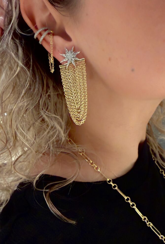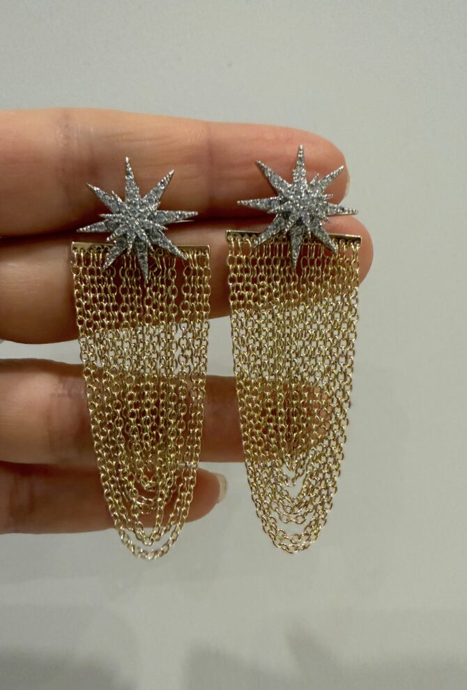 Luxury Zincir Püskül Taşlı Yıldız Küpe