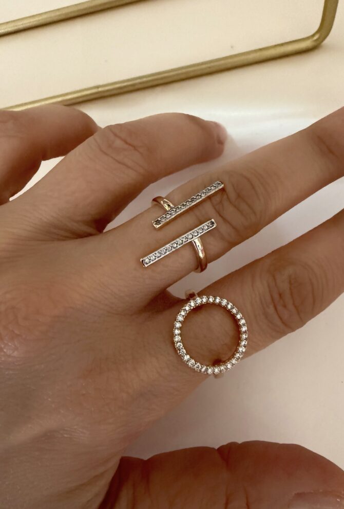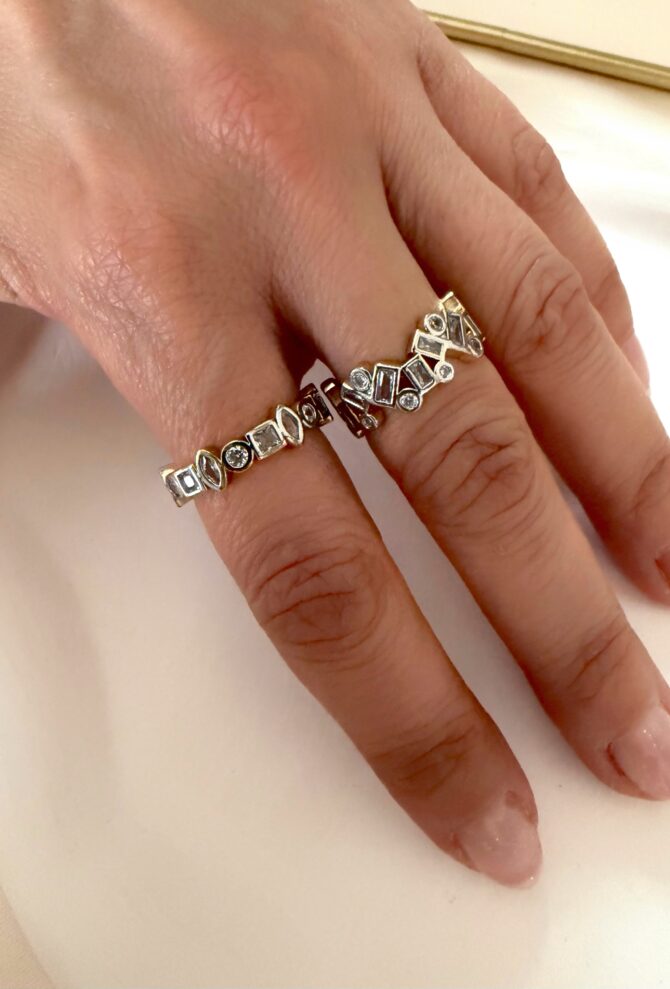 Tasarım Asimetrik Taş Dizi Ayarlı Yüzükler