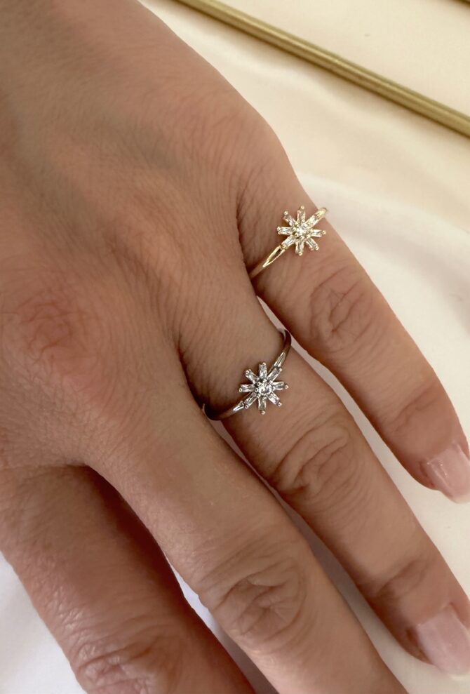 Minimal Taşlı Çiçek Ayarlı Yüzük