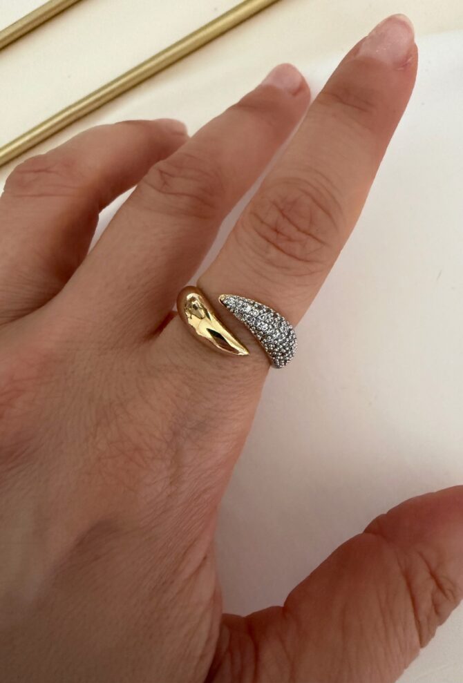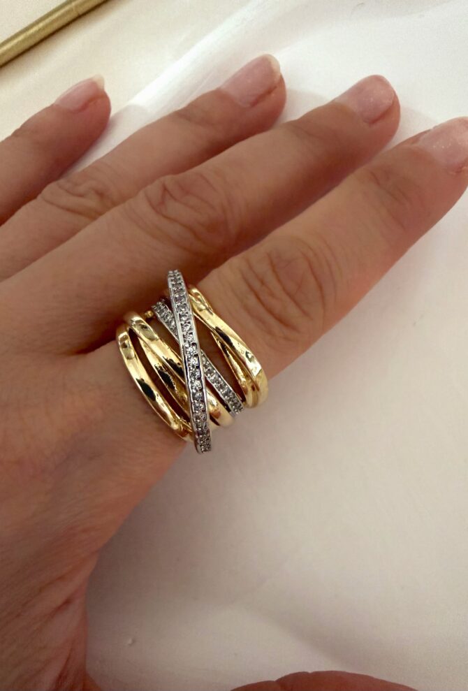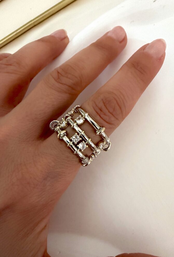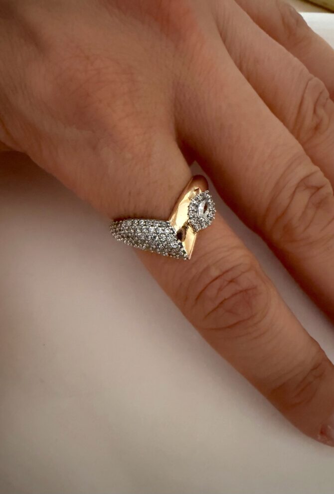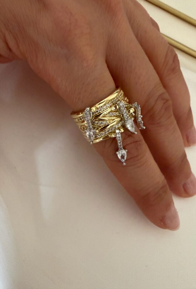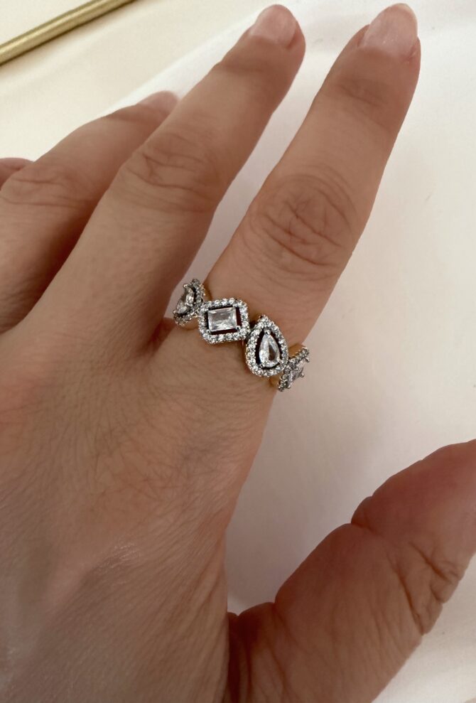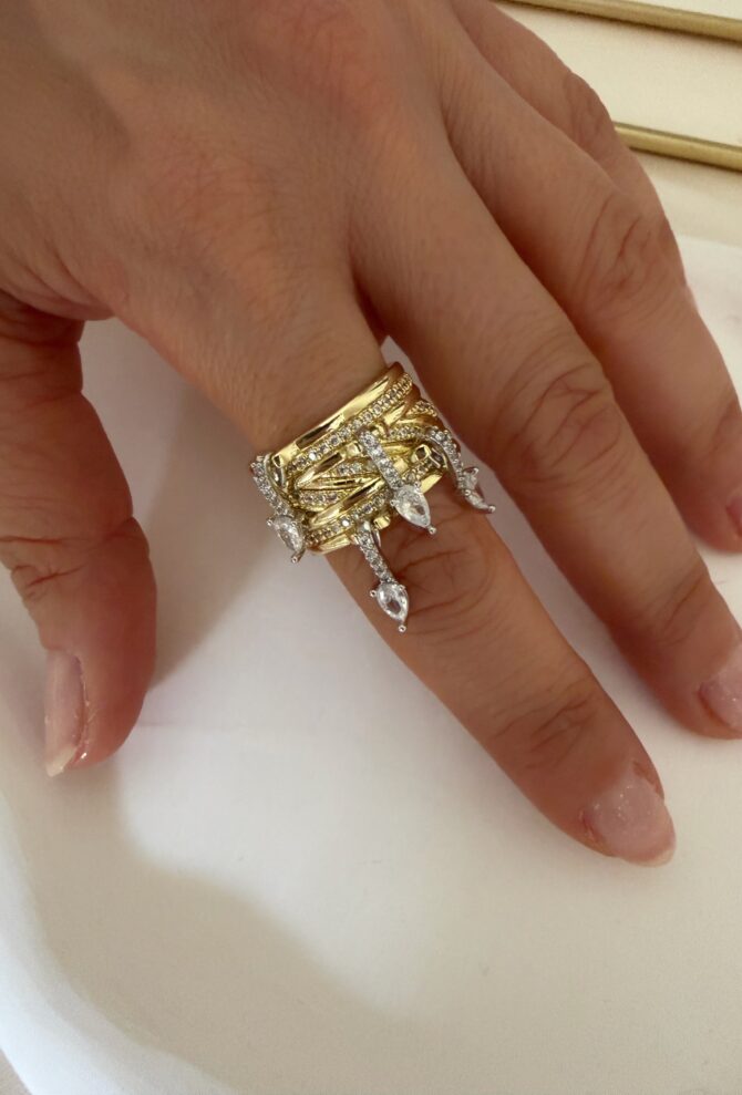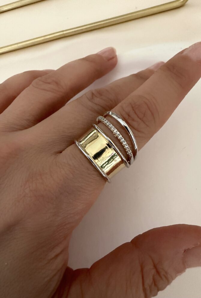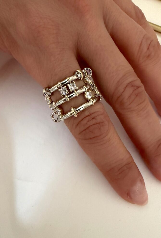 Gold Gümüş Geçmeli Taşlı Tasarım Yüzük