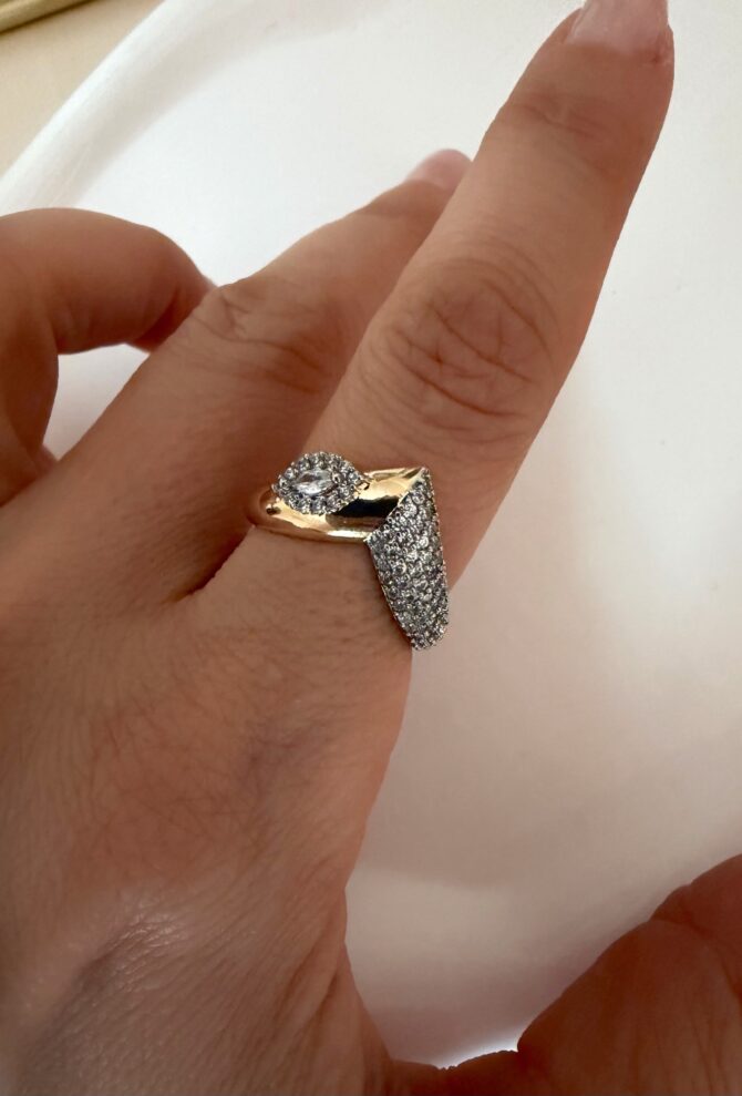 Asimetrik V Taş Plaka Ayarlı Yüzük