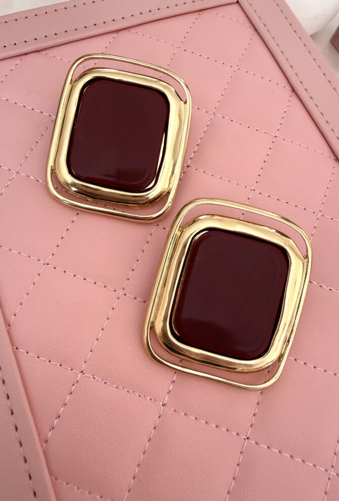 Gold Çerçeve Kare Küpe