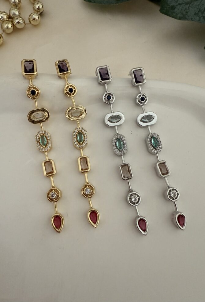 Renkli Kristal Taş Sallantılı Uzun Küpe