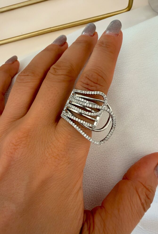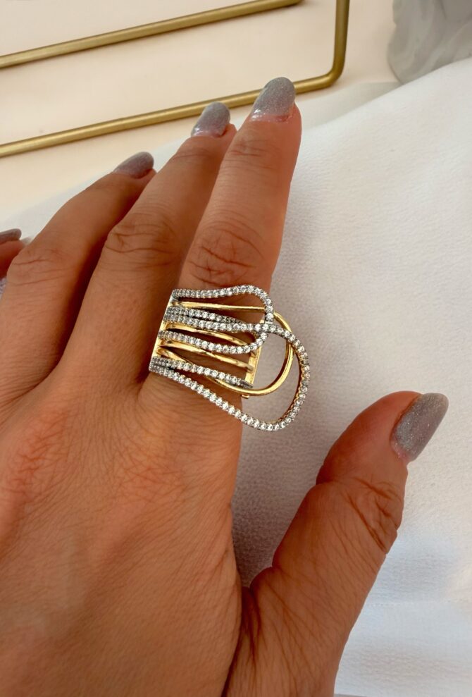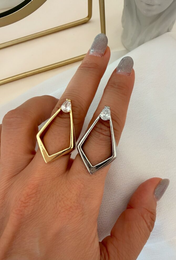 Tasarım Geometrik Plaka Ucu Taş Ayarlı Yüzük