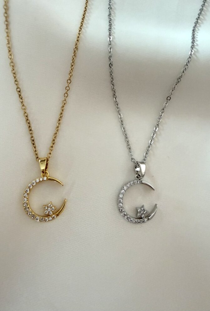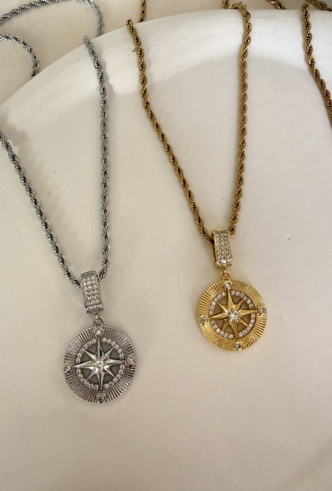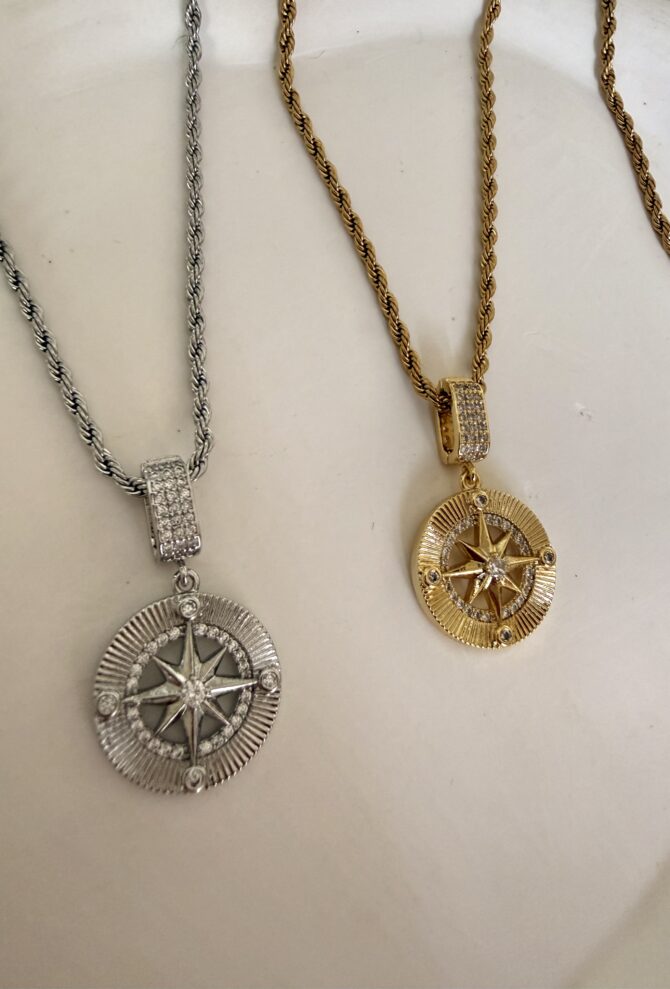 Çelik Uzun Burgu Zincir Pusula Yıldız Kolye