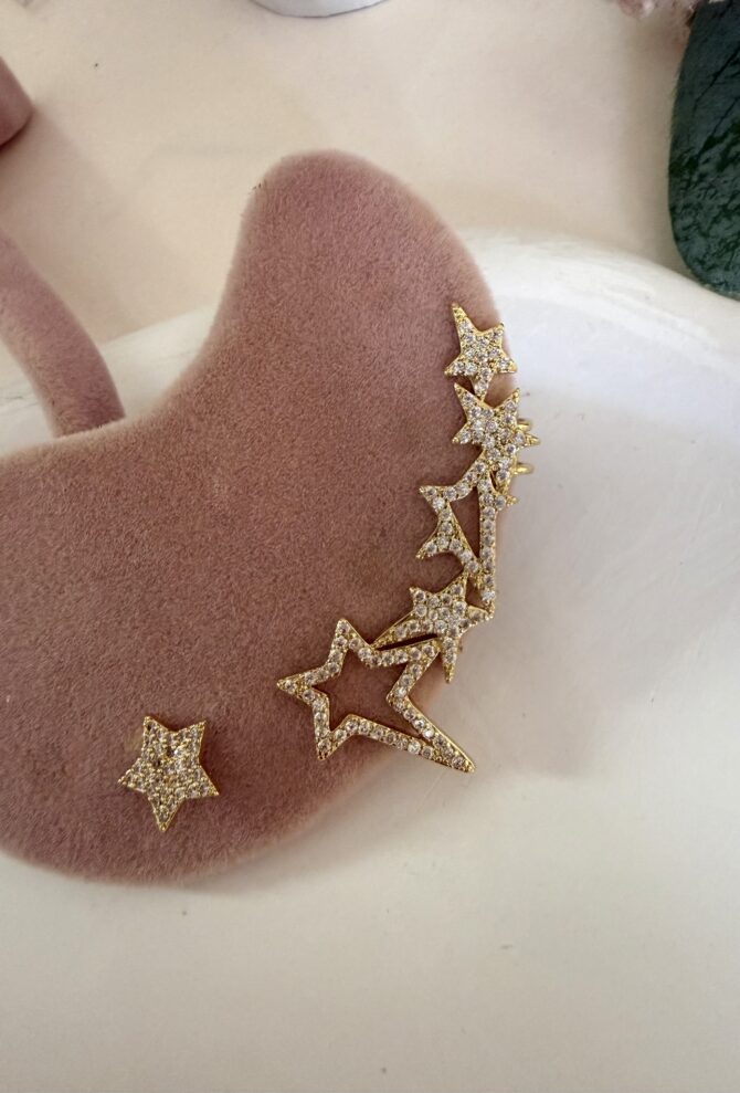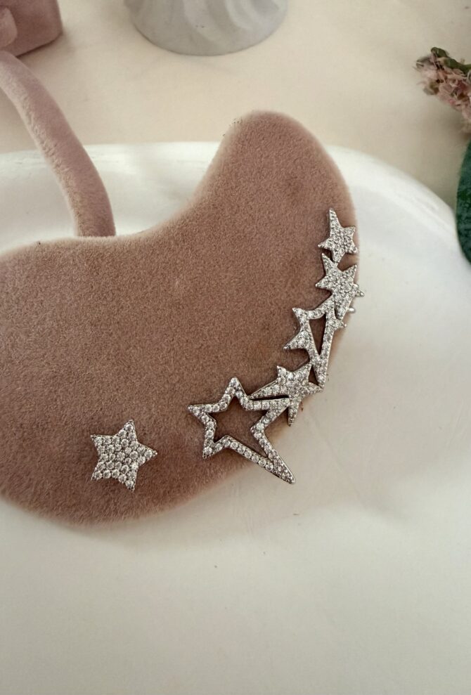 Sıralı Taşlı Yıldız Kıkırdaklı Küpe Seti