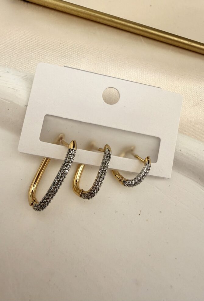 Kenarı Taş Mini Dikdörtgen Küpe Seti