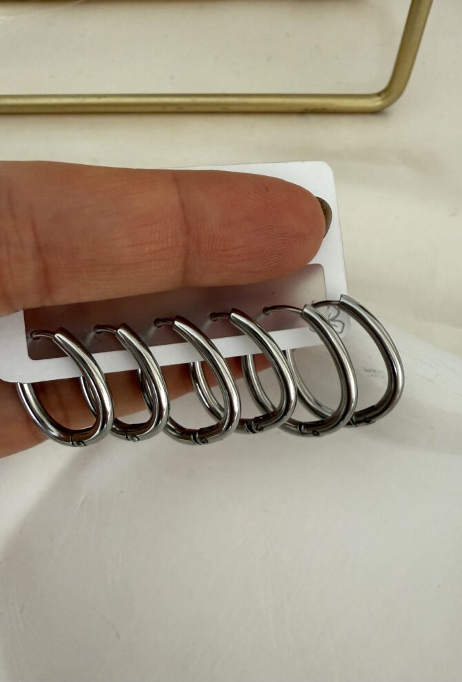 Çelik Oval Halka Küpe Seti