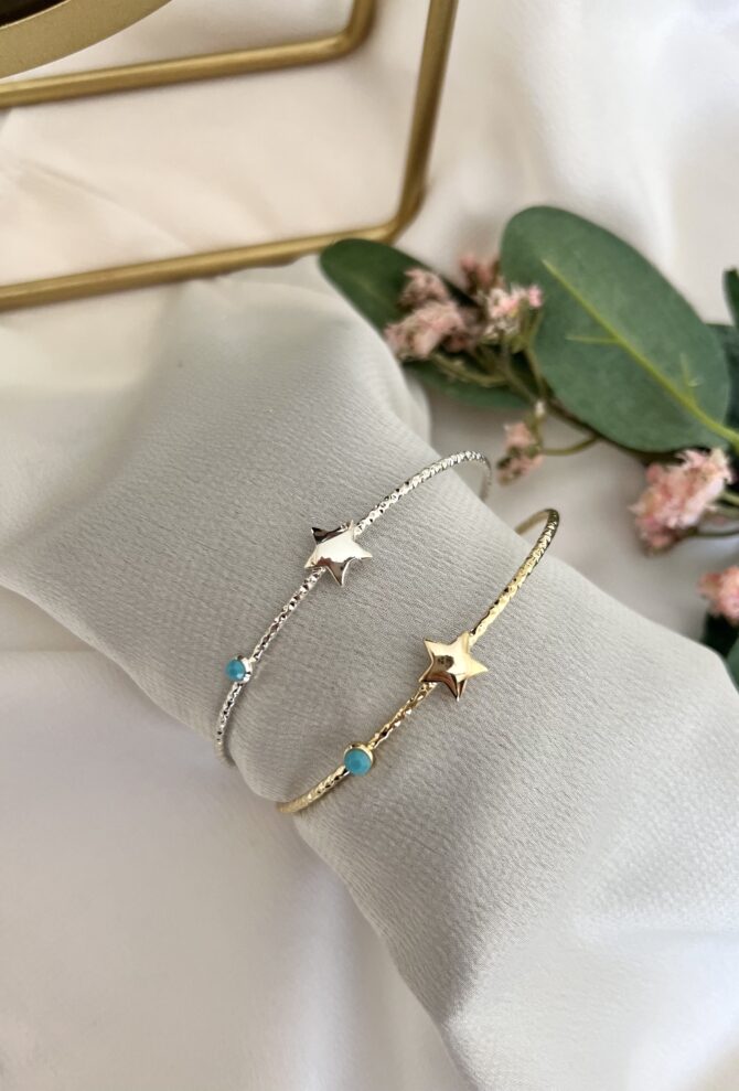 Mavi Mineli Yıldız Tel Bileklik