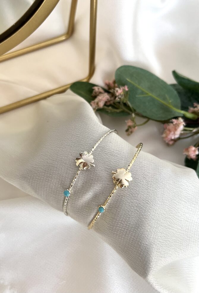 Mavi Mineli Yonca Tel Bileklik