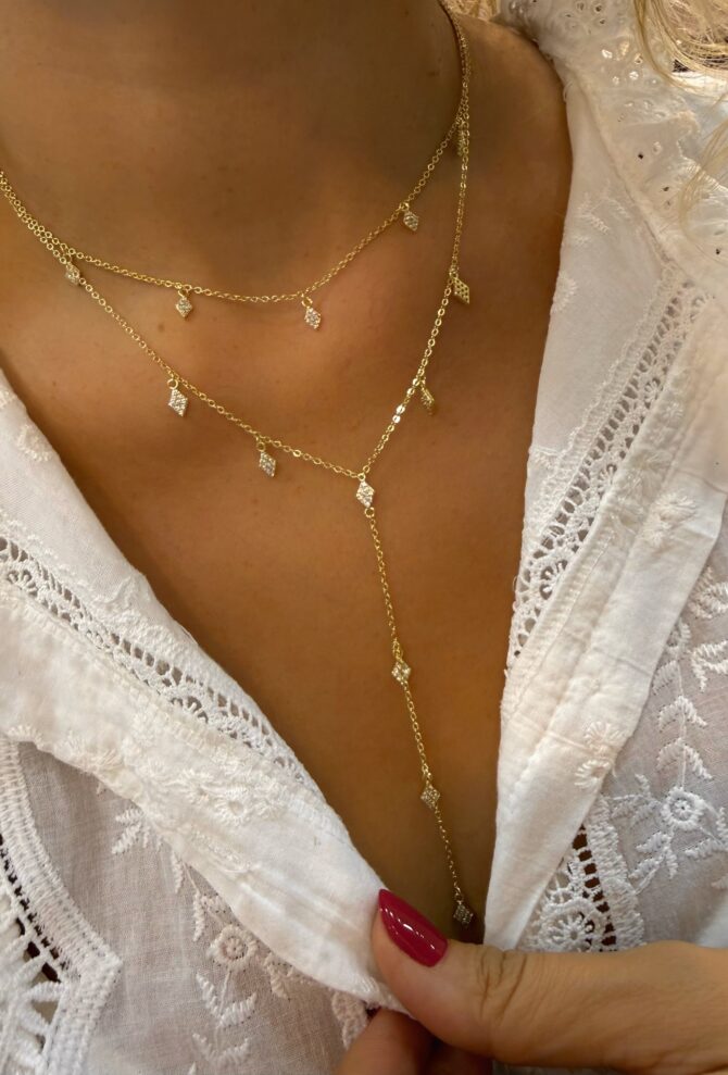 Özel Seri 2 li Mini Taş Sallantılı Y Kolye