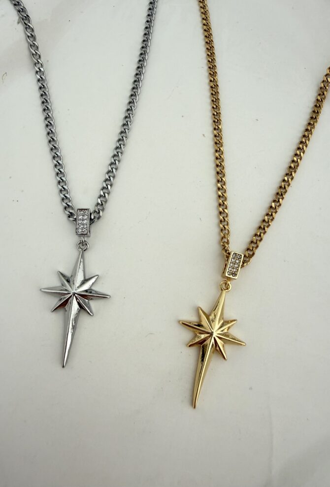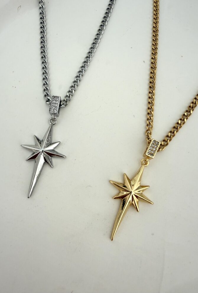Çelik Uzun Zincir Kuzey Yıldızı Kolye