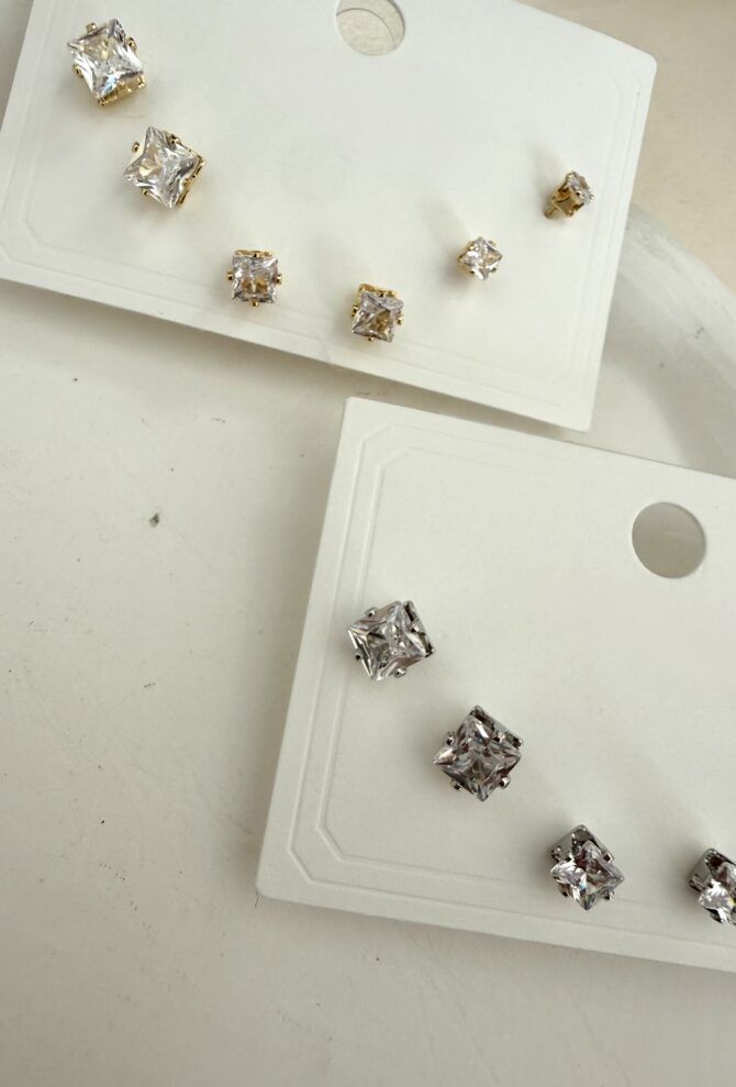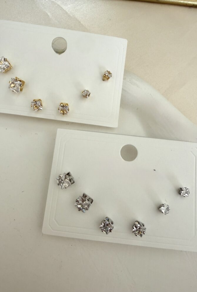 6 Lı Kare Taş Küpe Seti
