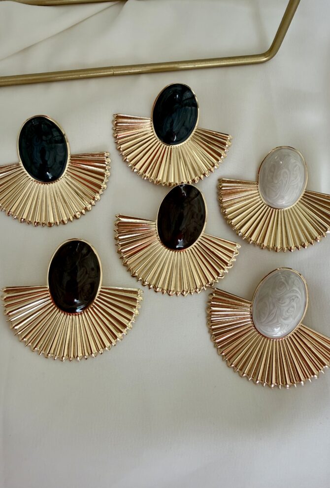 Ortası Kristal Taş Gold Plaka Hareli Küpe