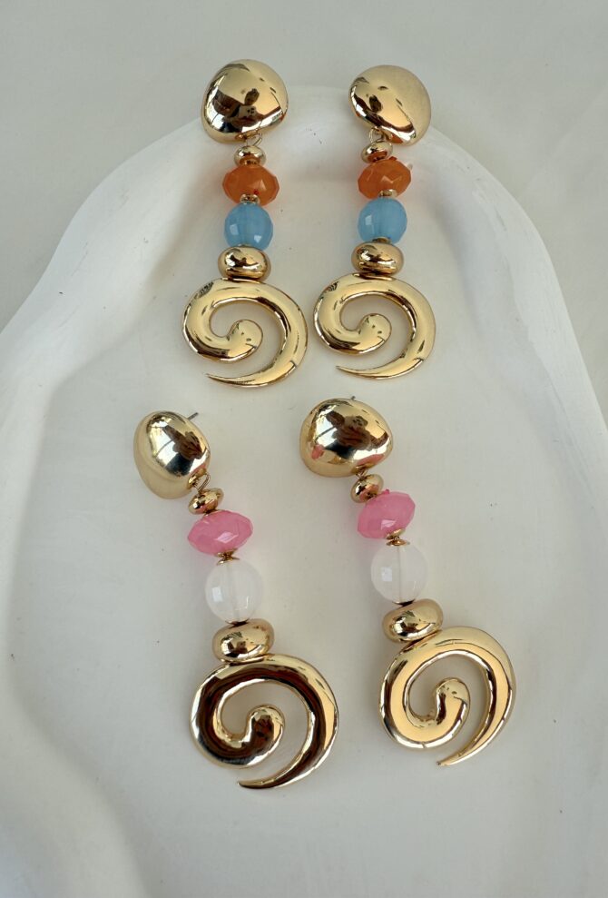 Renkli Taş Detay Sallantılı Helezon Küpe
