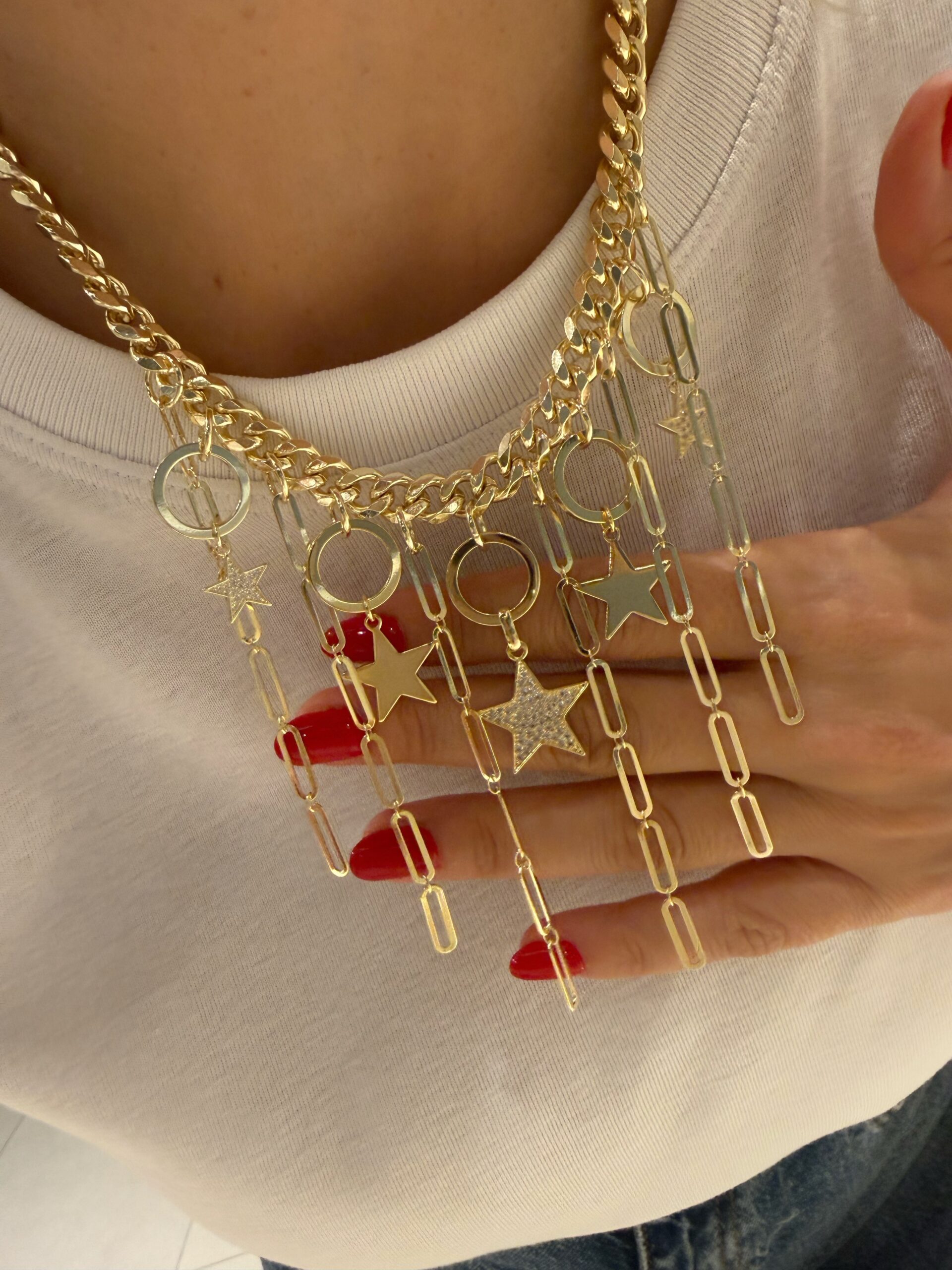 14 K Altın Kaplama Püskül Zincir Yıldız Kolye