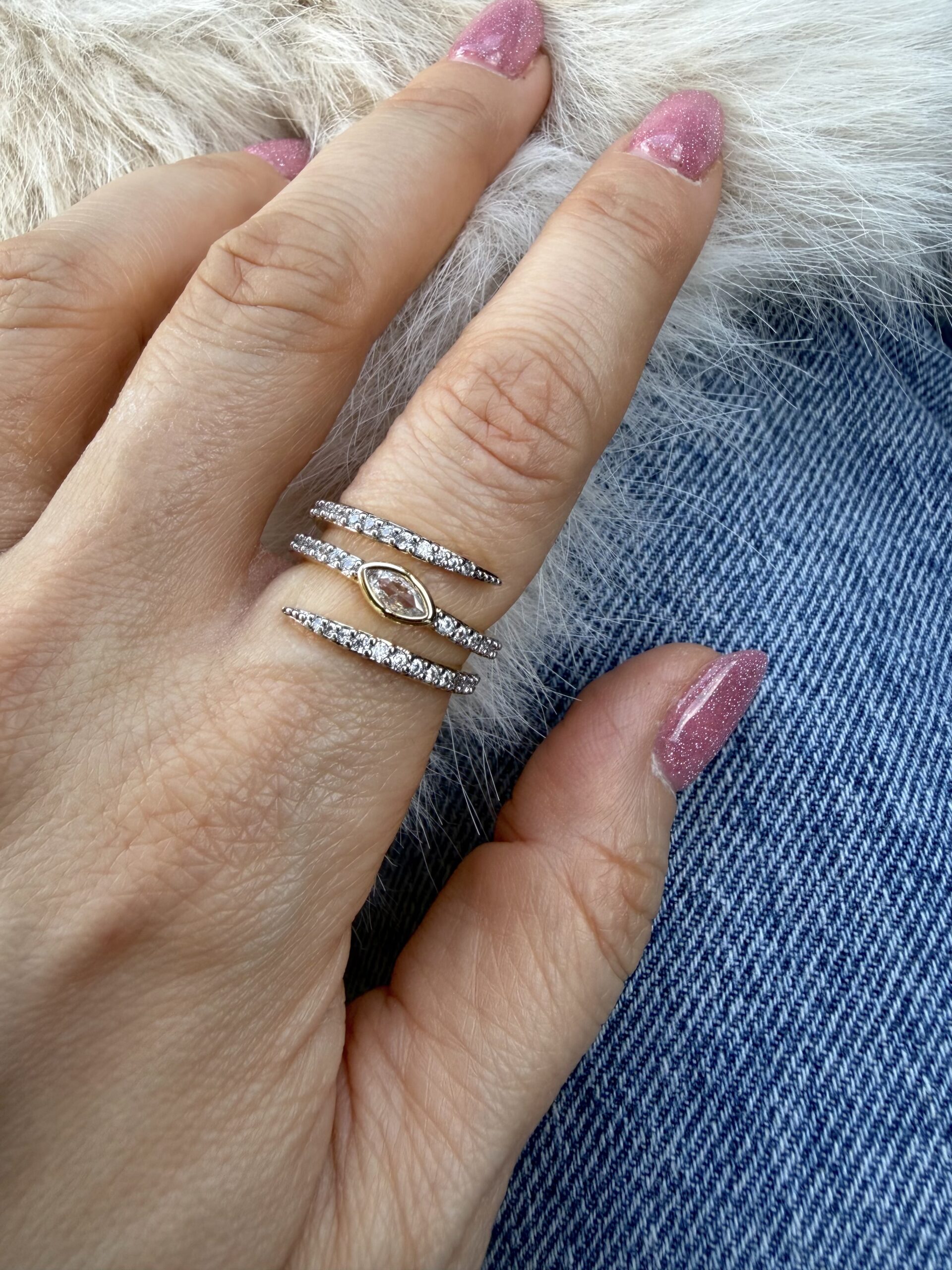 3 Sıra Taş Ortası Damla Yasarım Ayarlı Yüzük