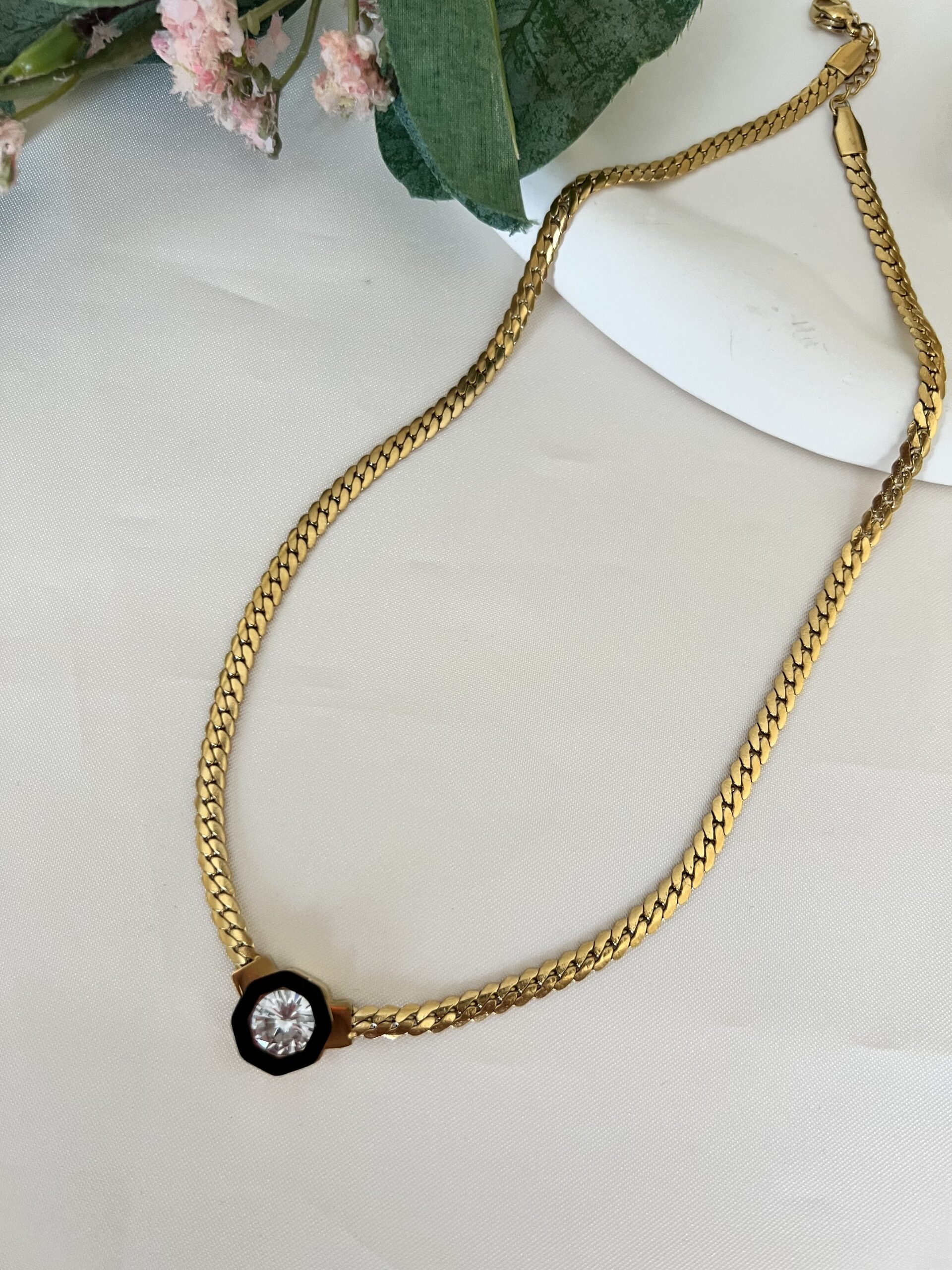 Çelik Tek Taş Yassı Zincir Kolye