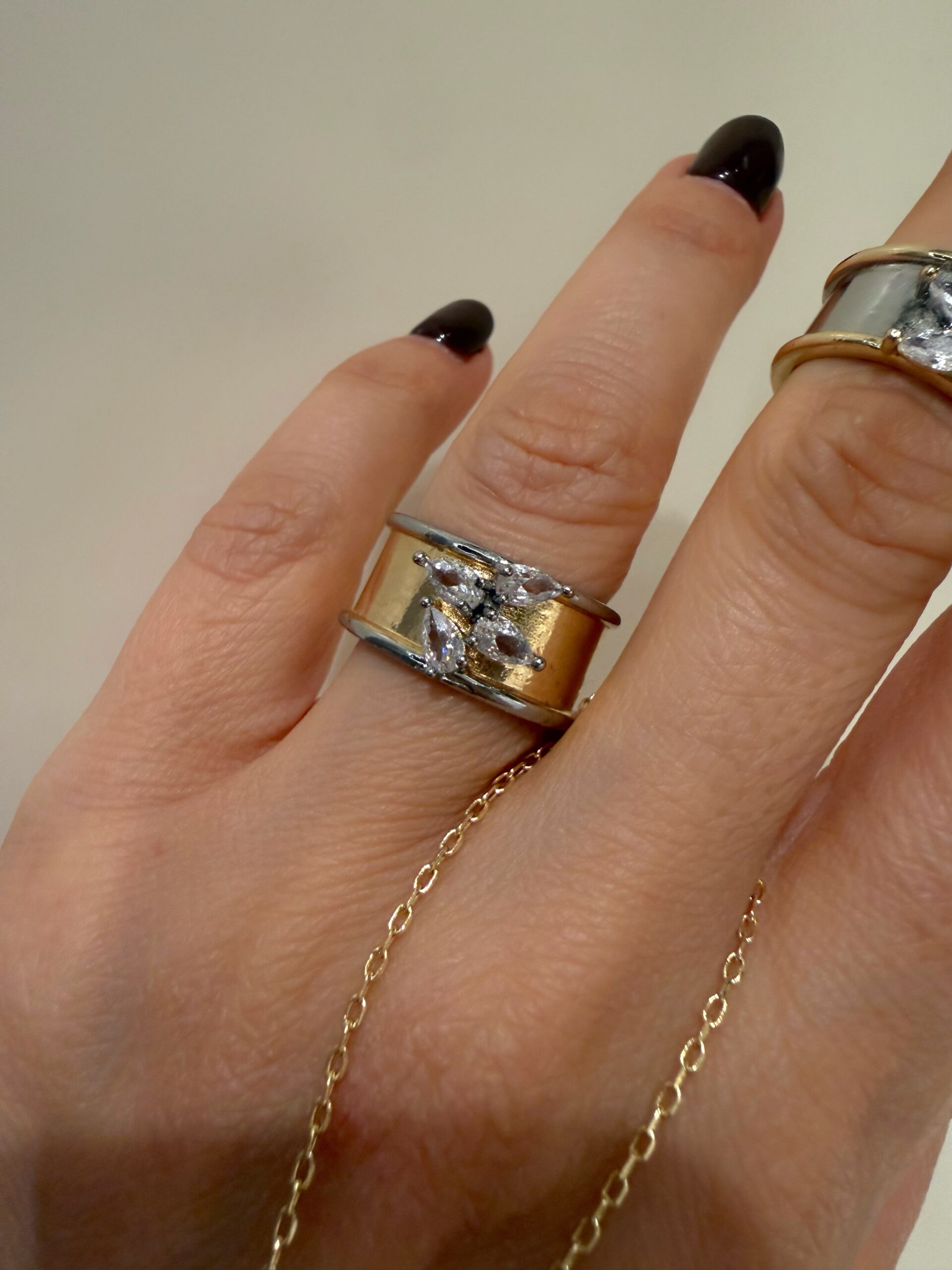 Damla Kristal Taş Plaka Ayarlı Yüzük