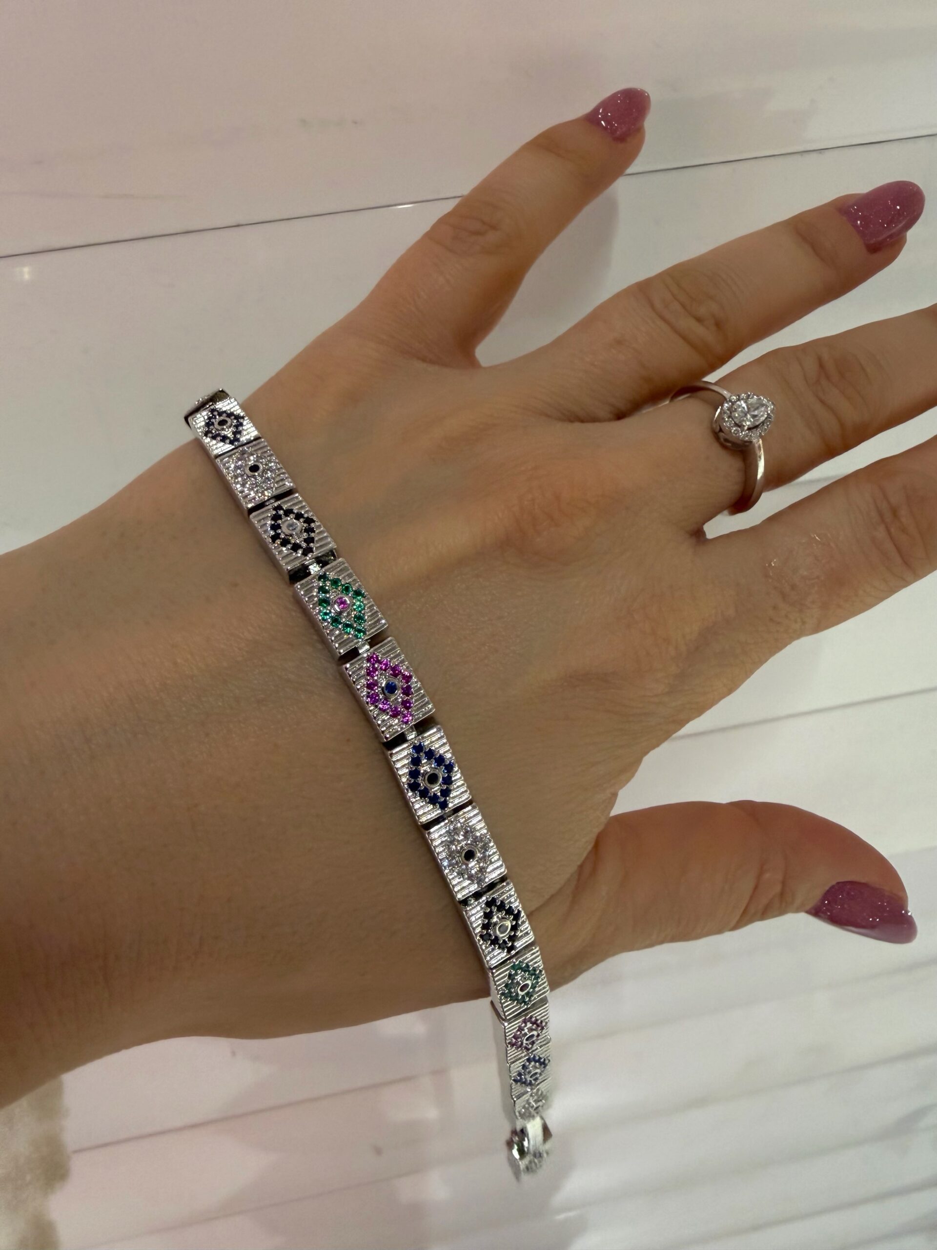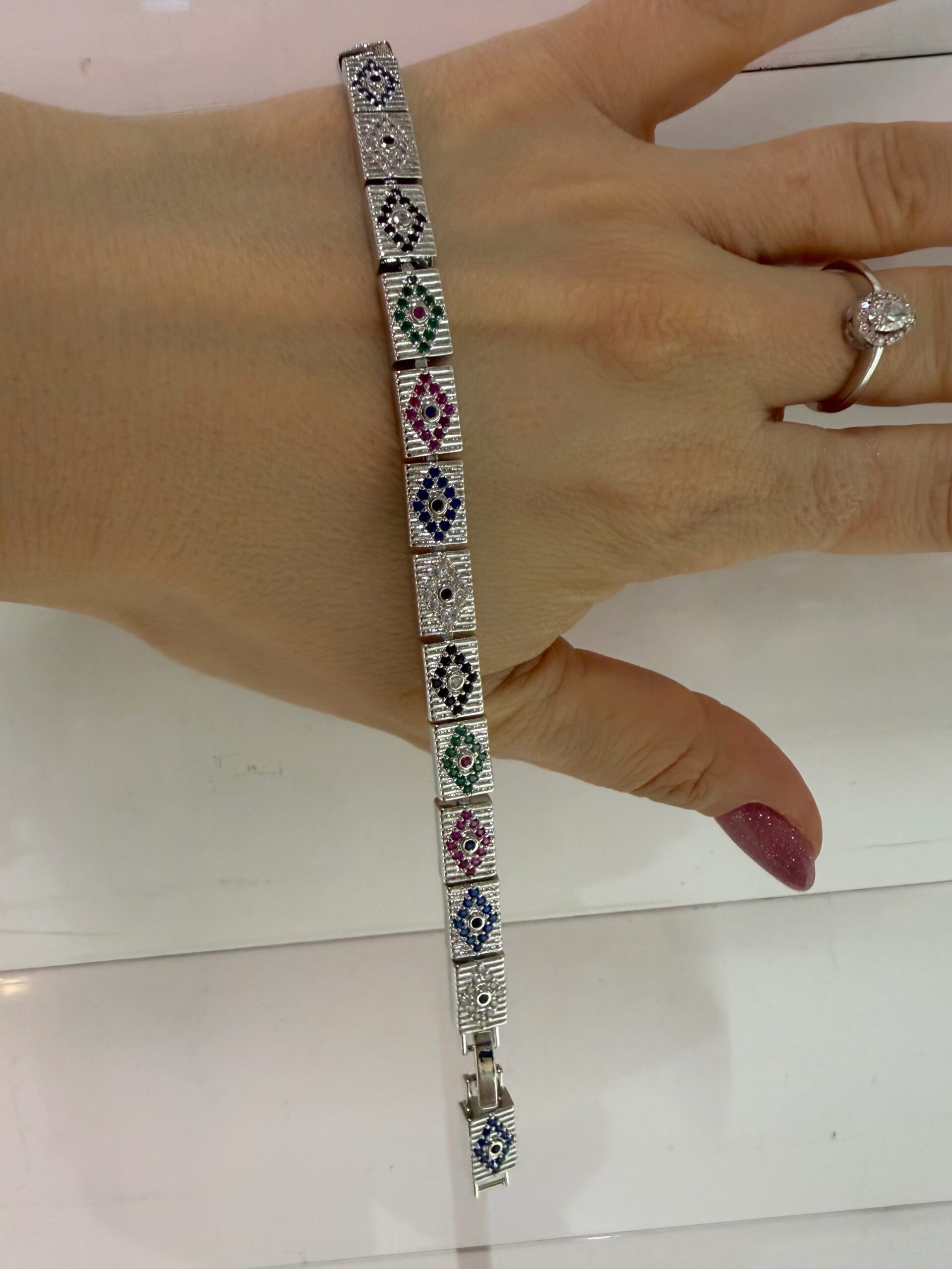Etnik Desen Renkli Zirkon Taş Gümüş Renk Hasır Bileklik