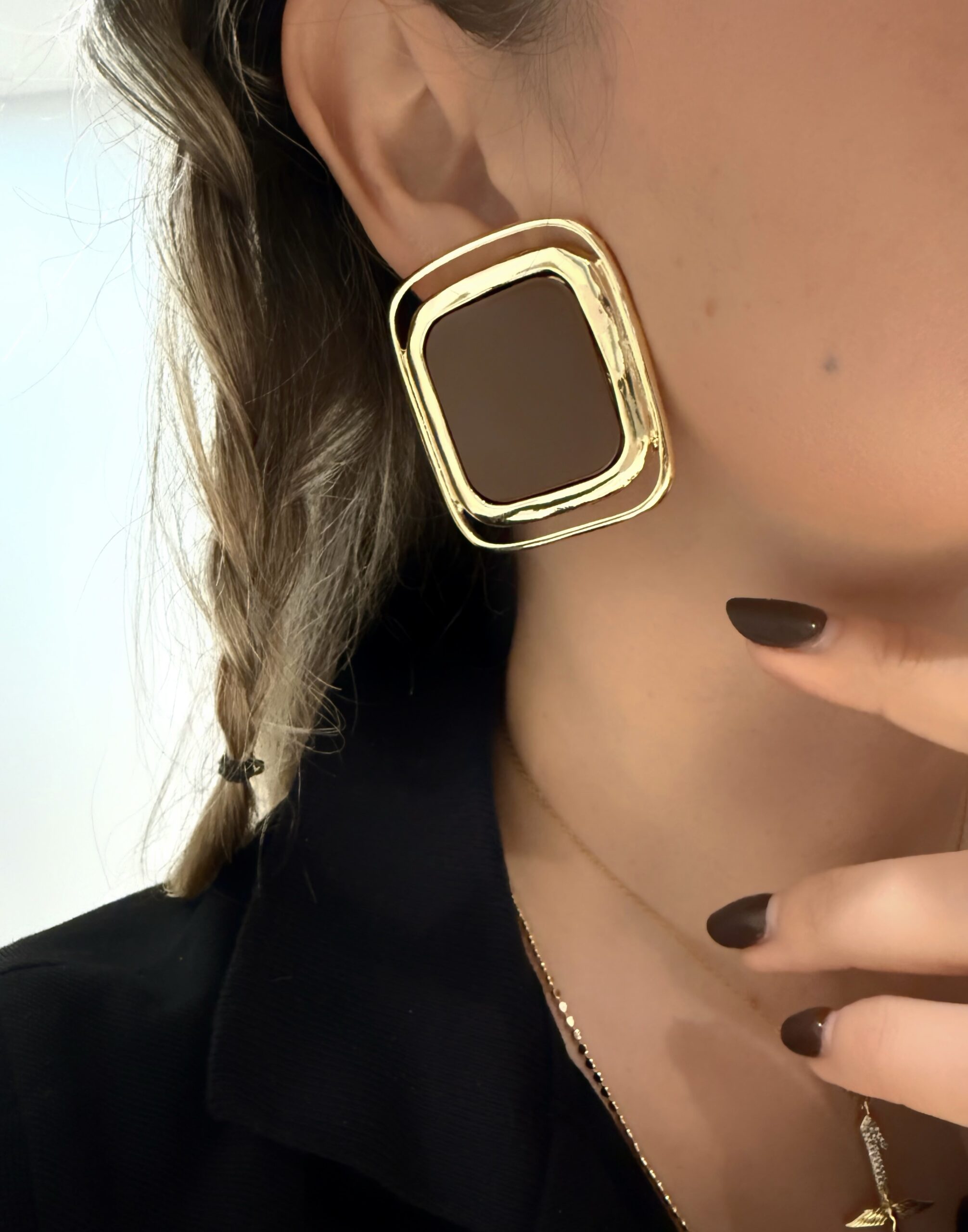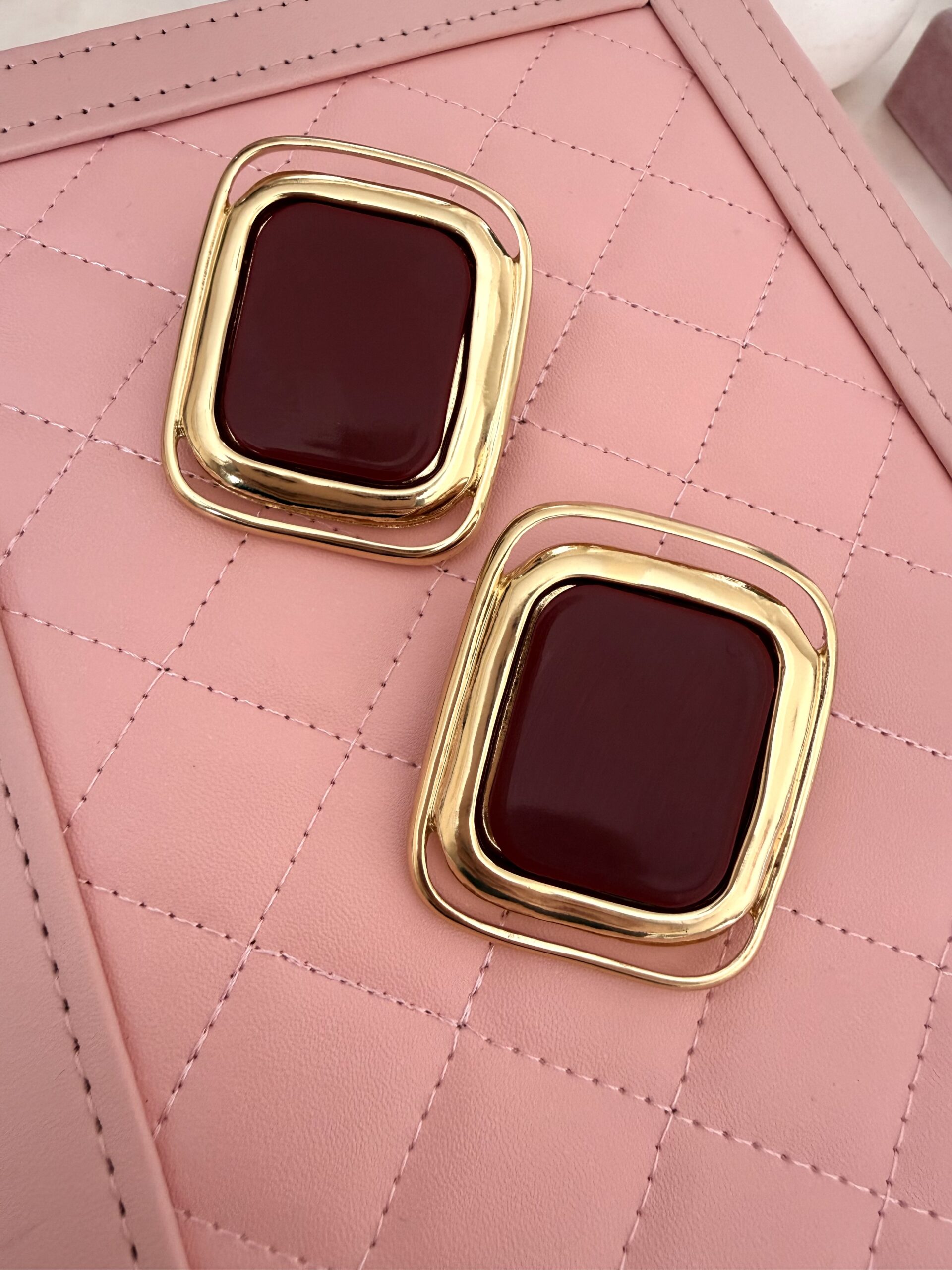 Gold Çerçeve Kare Küpe