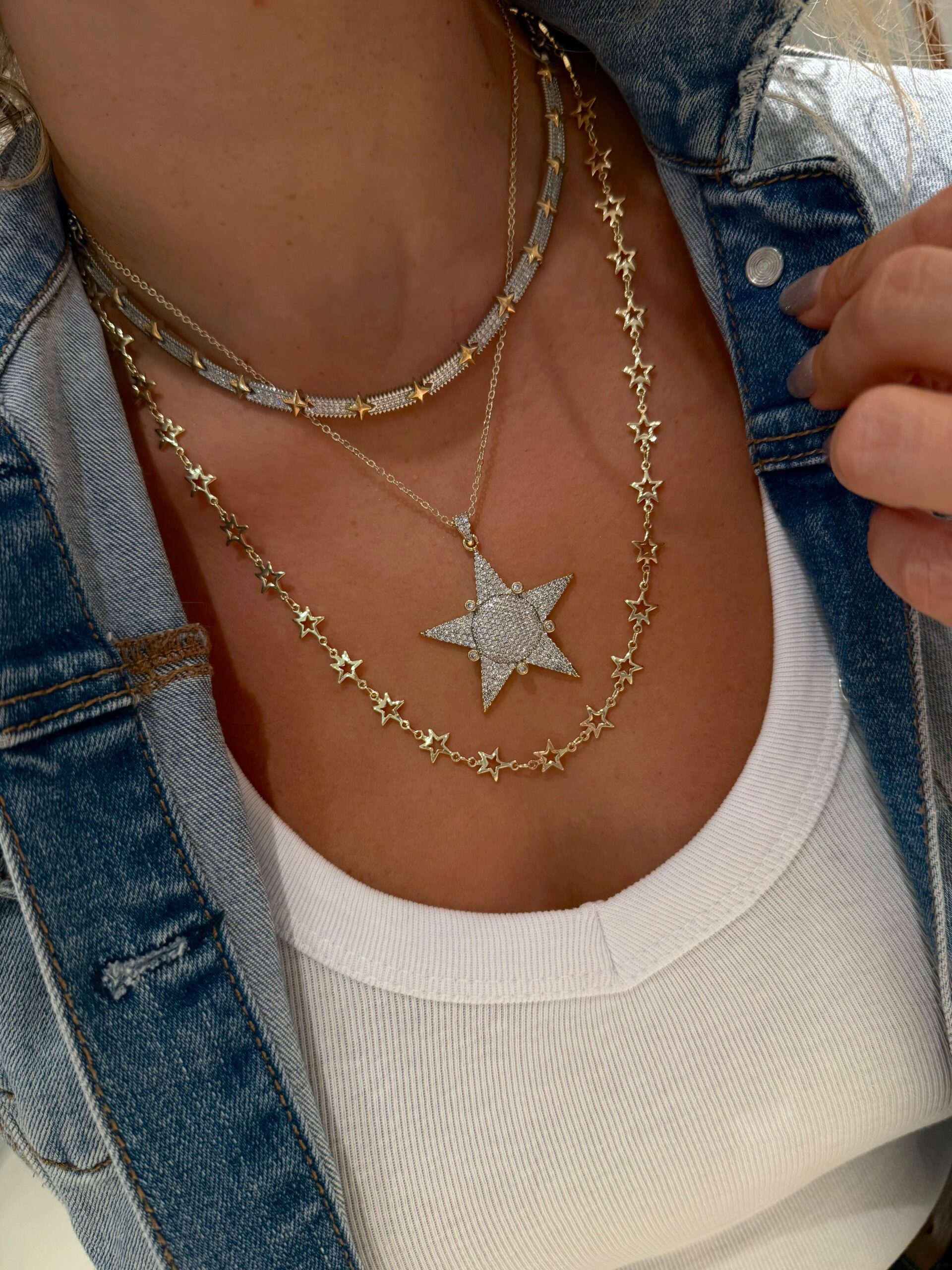 Gold Gümüş İri Taşlı Yıldız Kolye Kombin adet