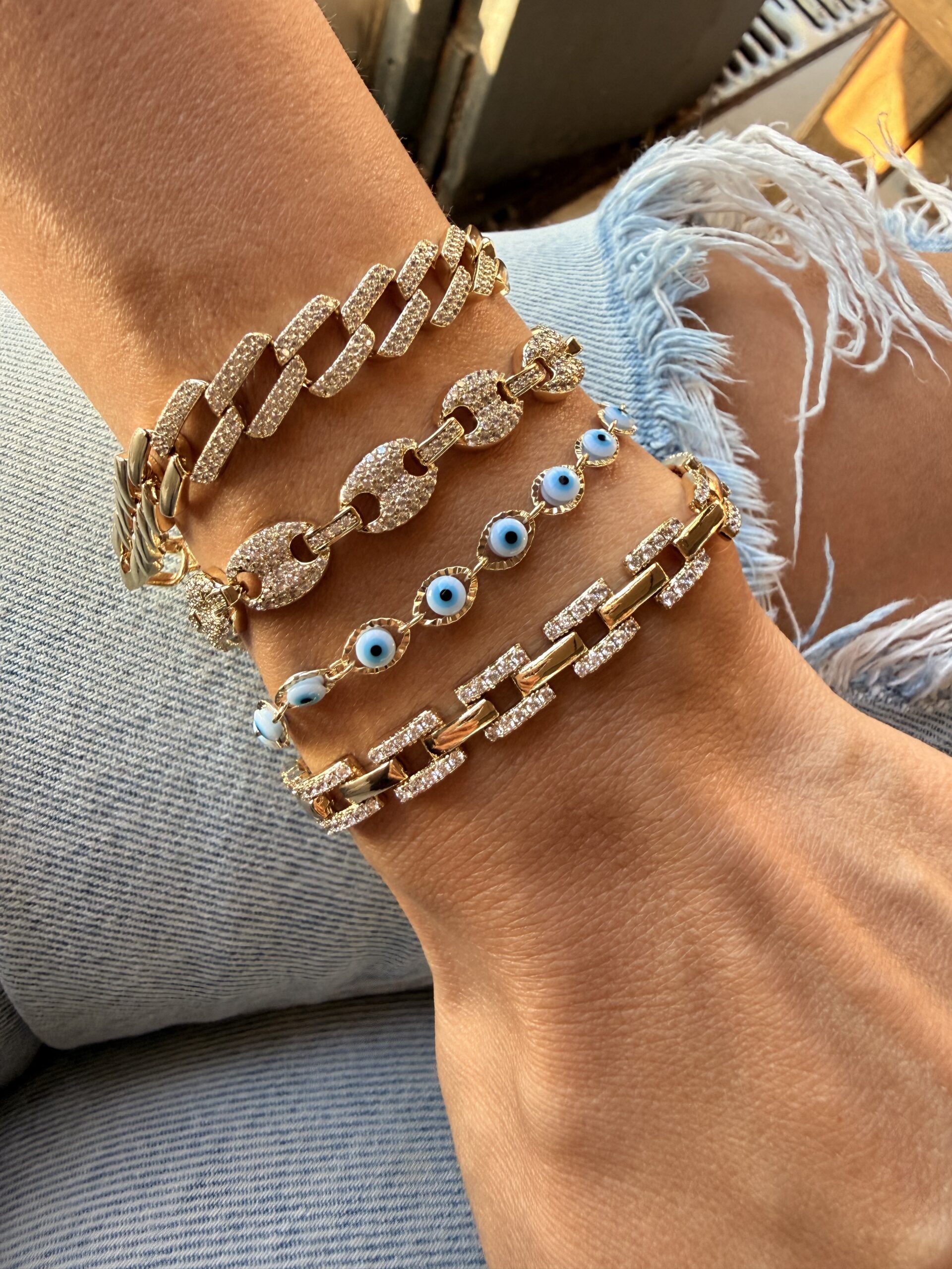 Gold Taşlı Göz Bileklik Kombin