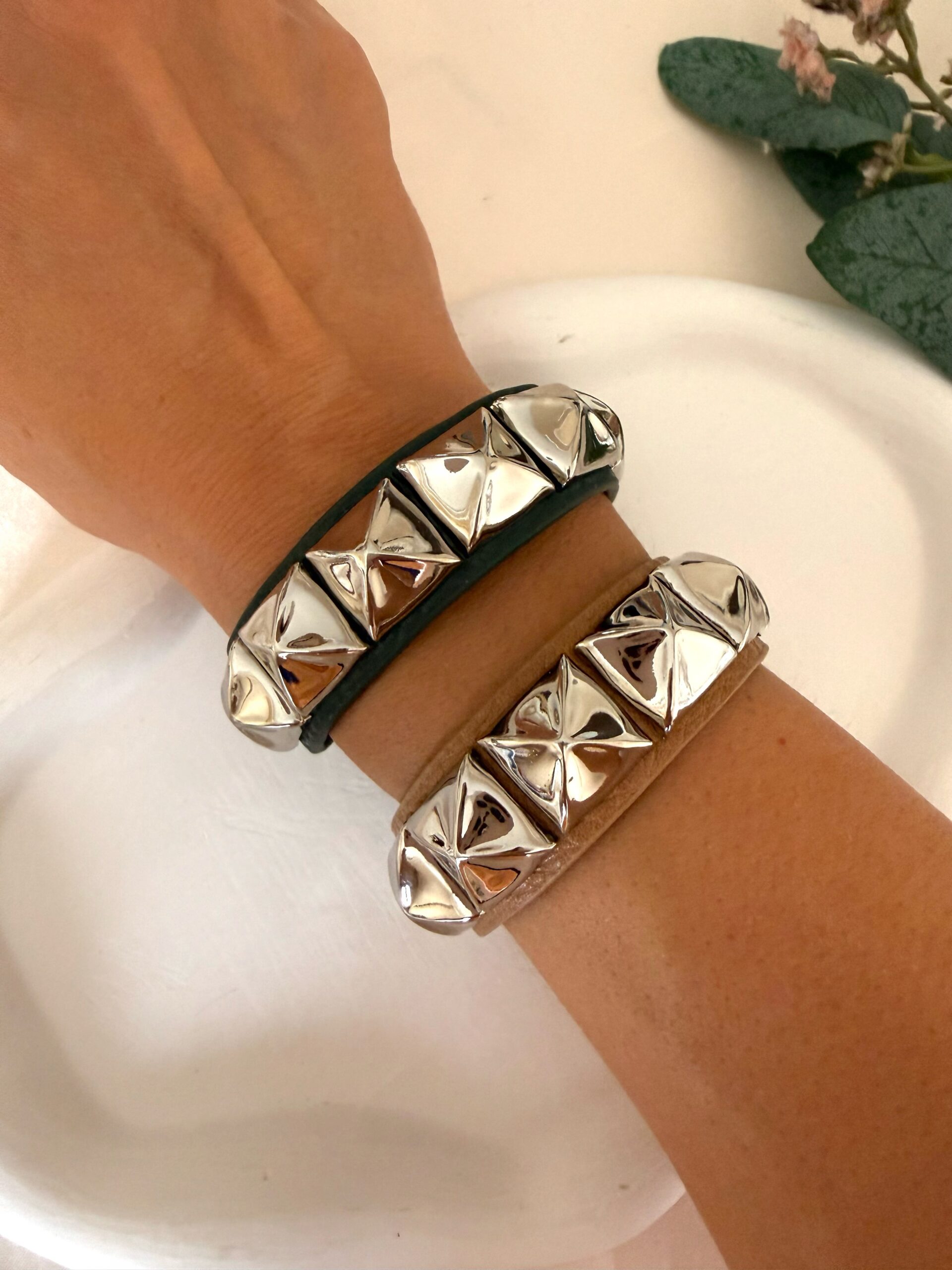 Gümüş İri Zımba Deri Kemer Bileklik