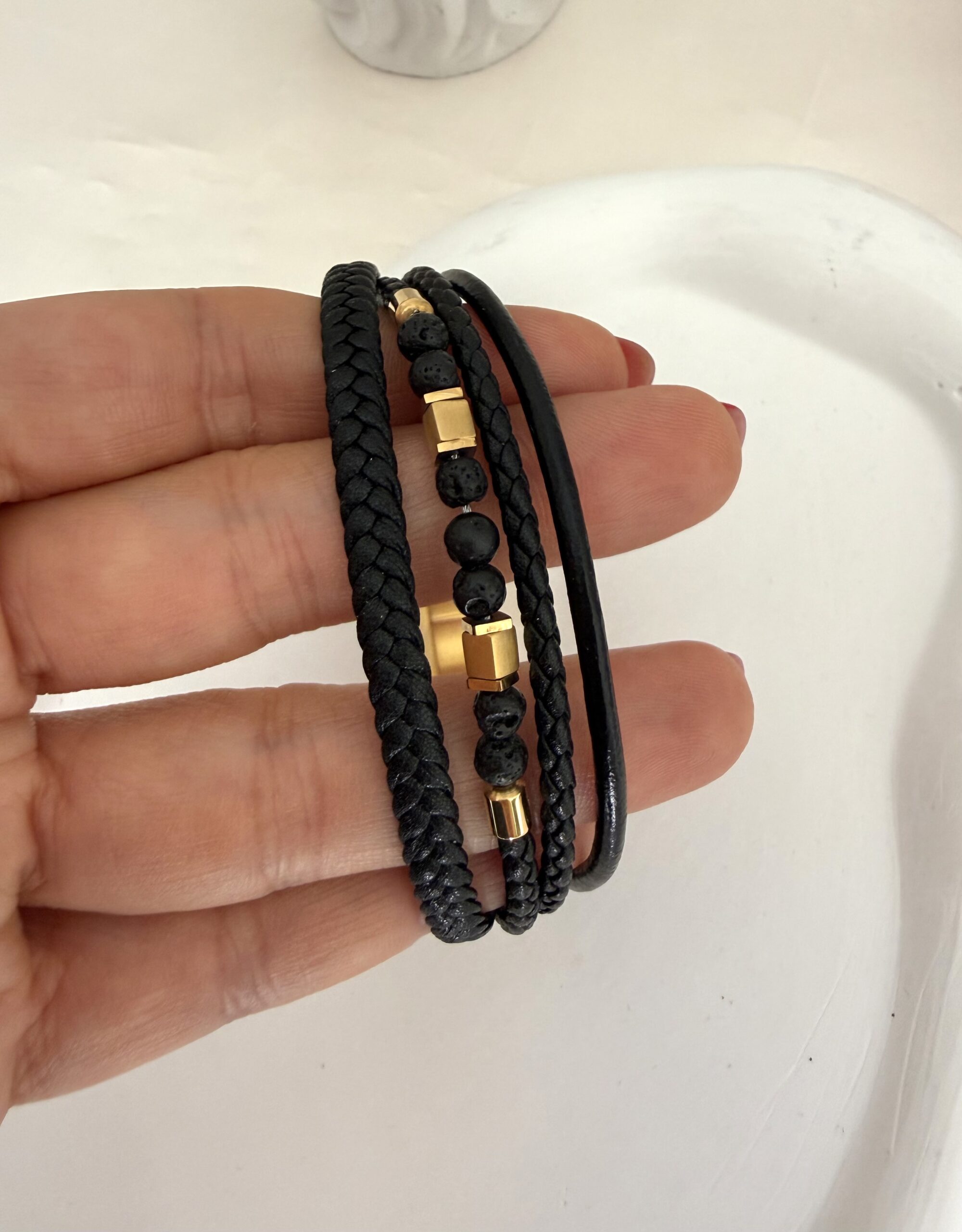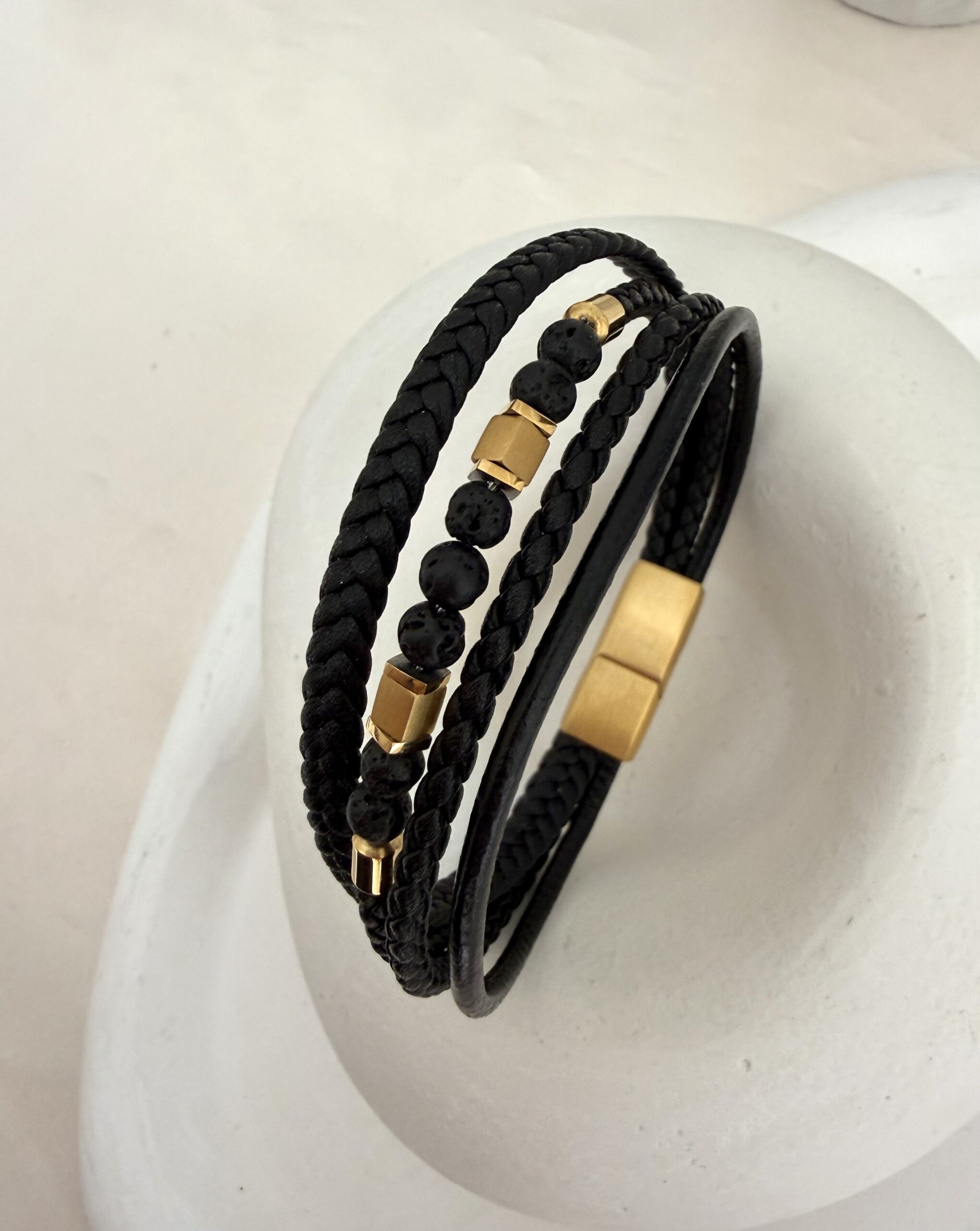 Hematit Lav Taşlı 4 lü Deri Çelik Erkek Bileklik adet