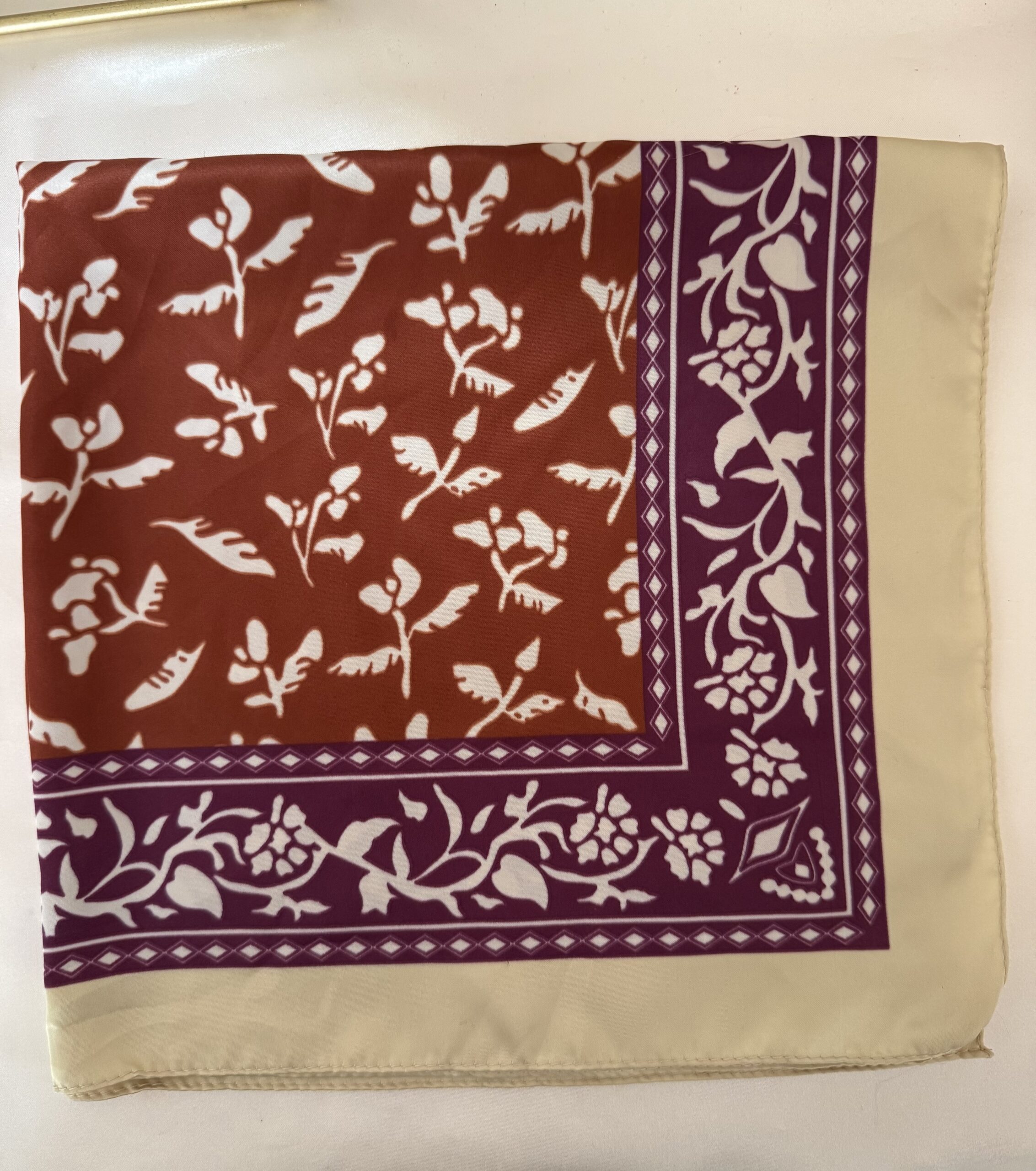 Kahve Mor Krem Çiçek Desen Fular (55×55 cm)