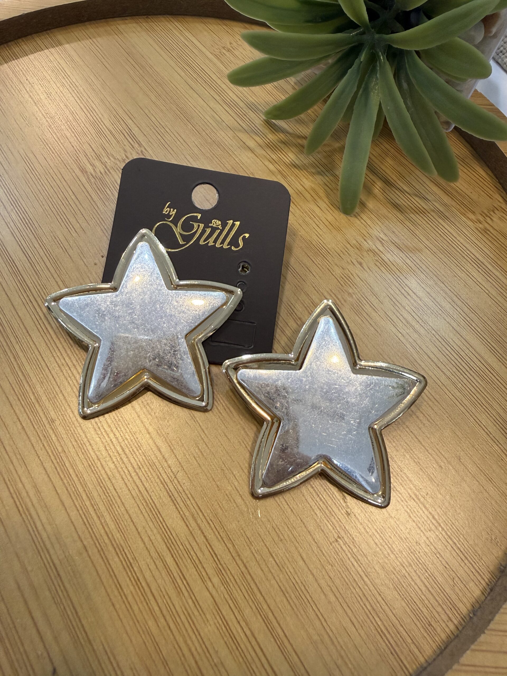 Kenarı Gold Mat Gümüş Plaka Yıldız Küpe