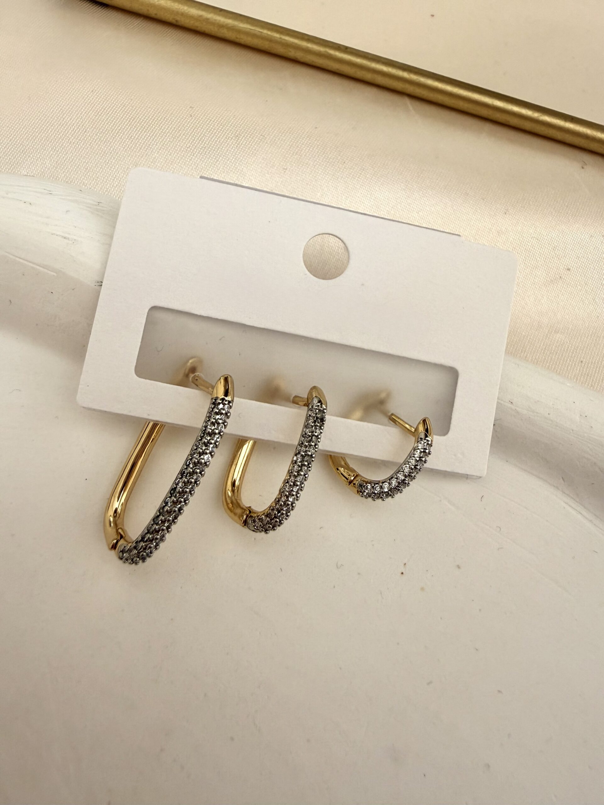 Kenarı Taş Mini Dikdörtgen Küpe Seti