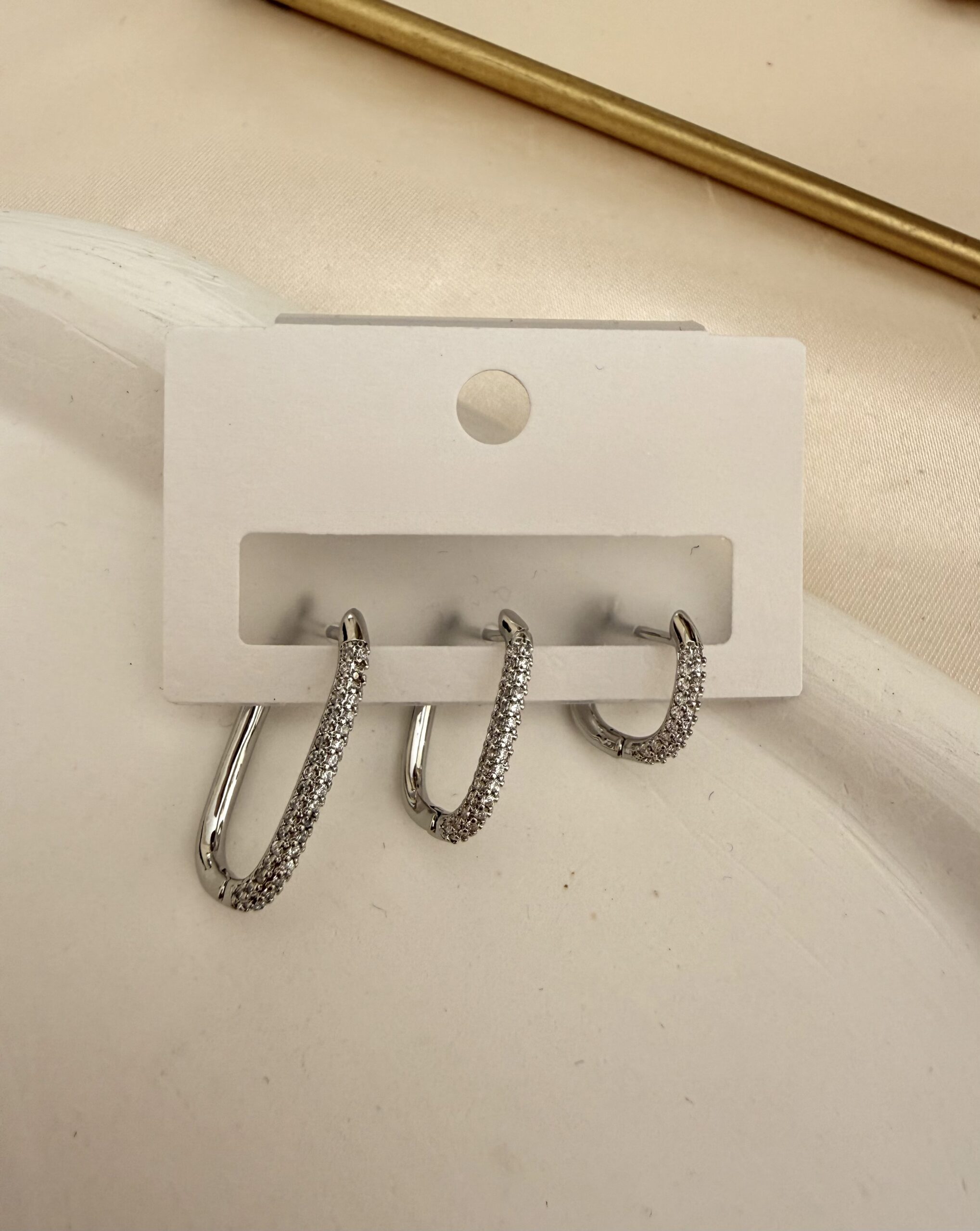 Kenarı Taş Mini Dikdörtgen Küpe Seti adet