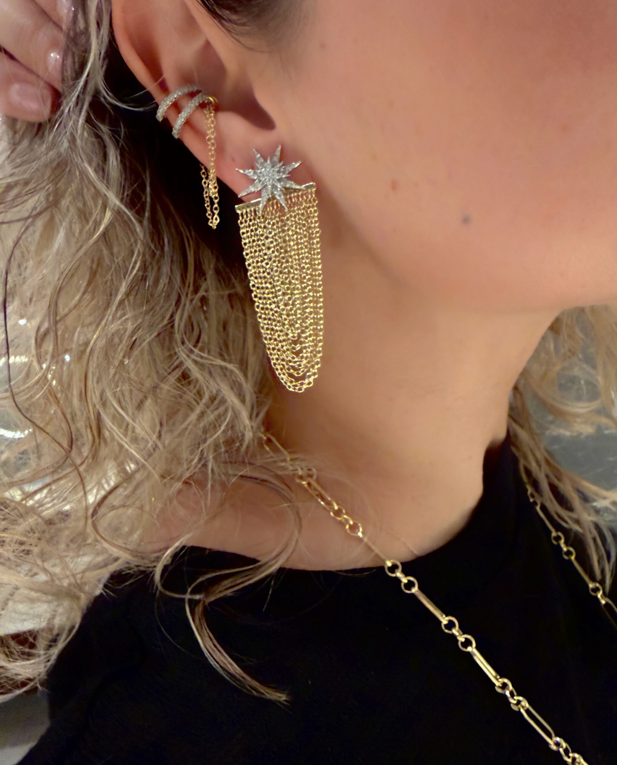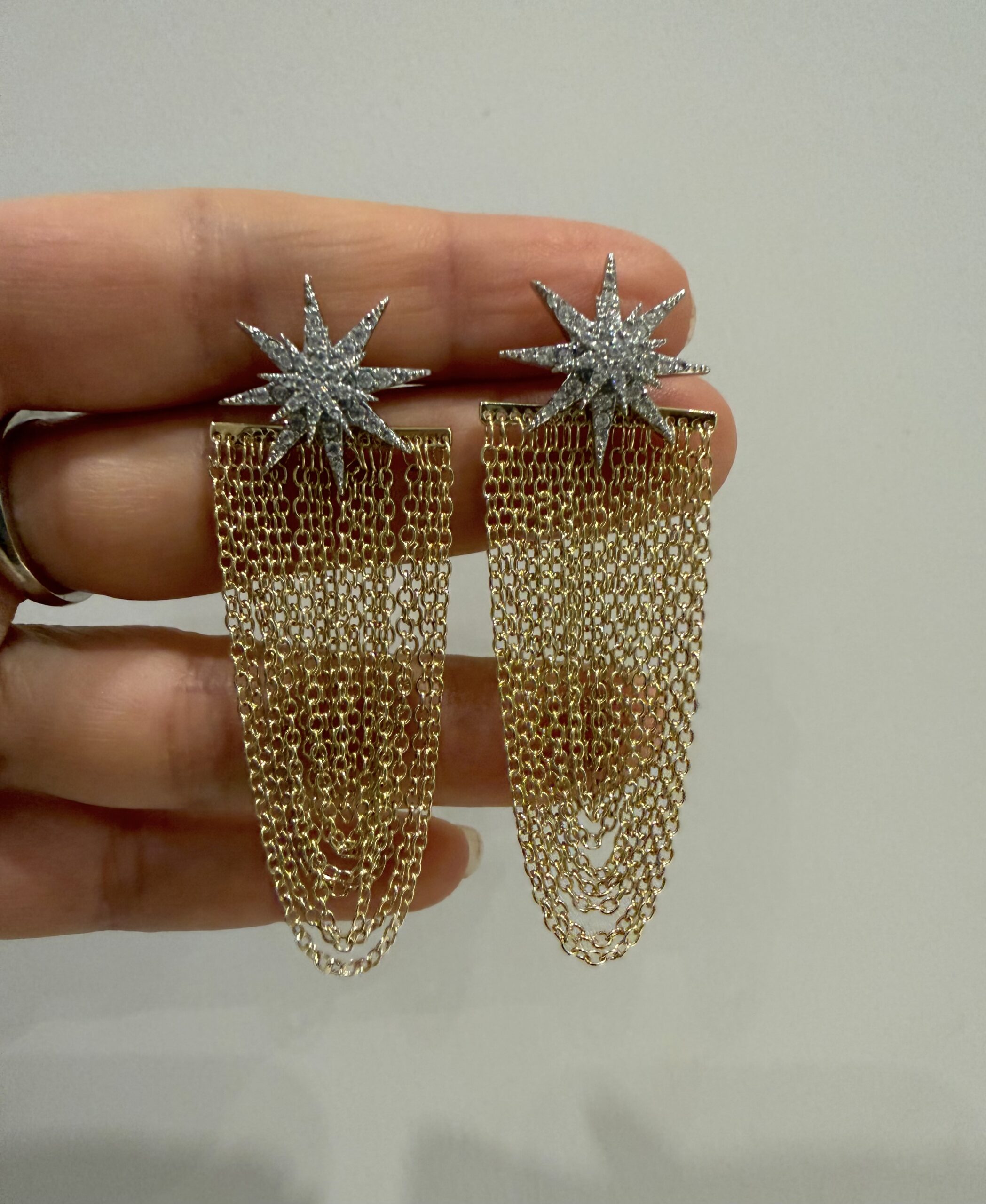 Luxury Zincir Püskül Taşlı Yıldız Küpe