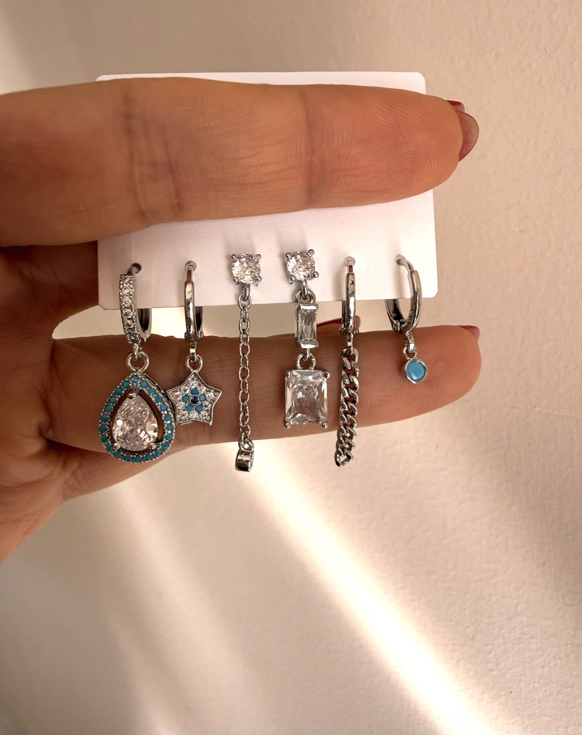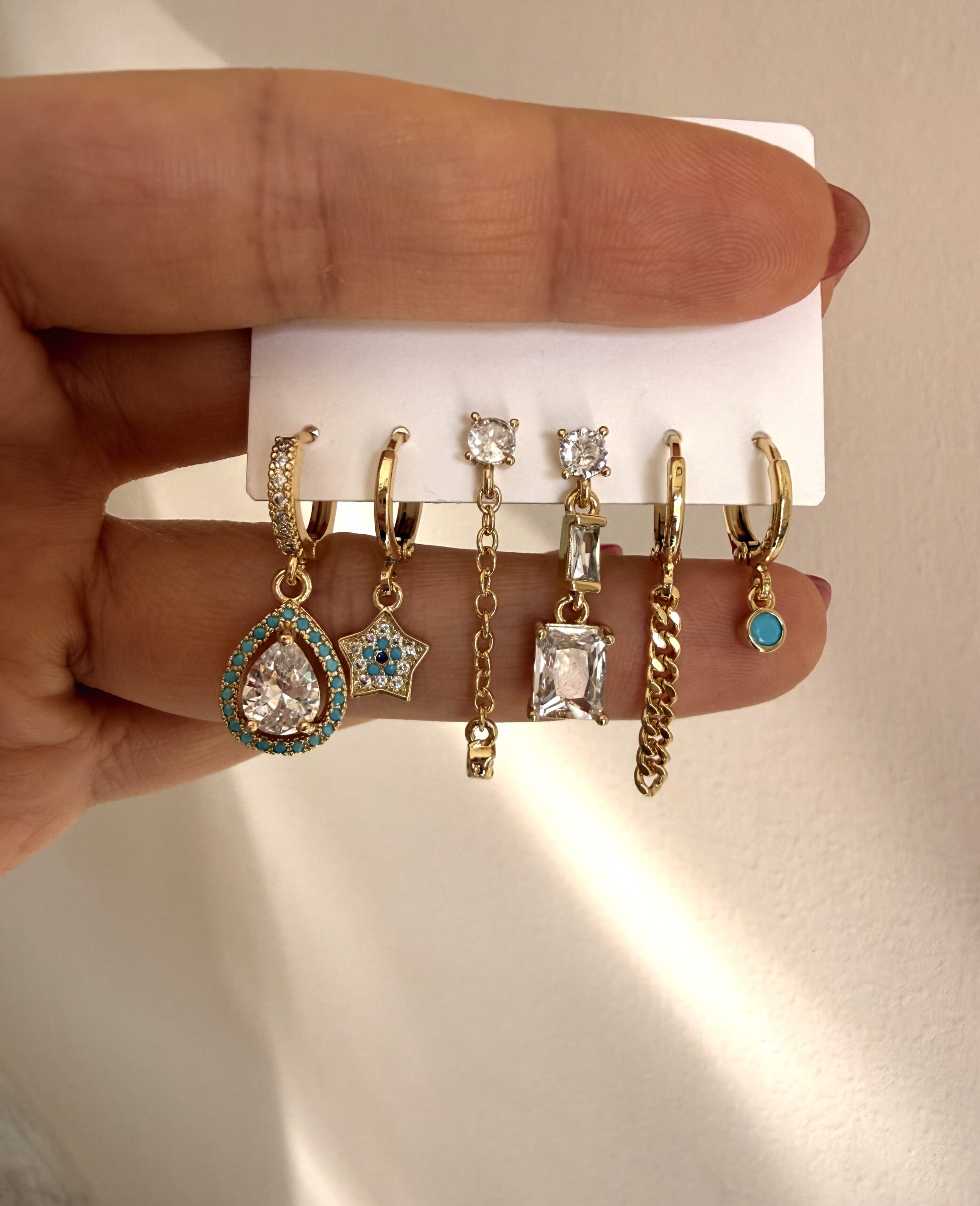 Mavi Mineli Damla Yıldız Küpe Seti adet