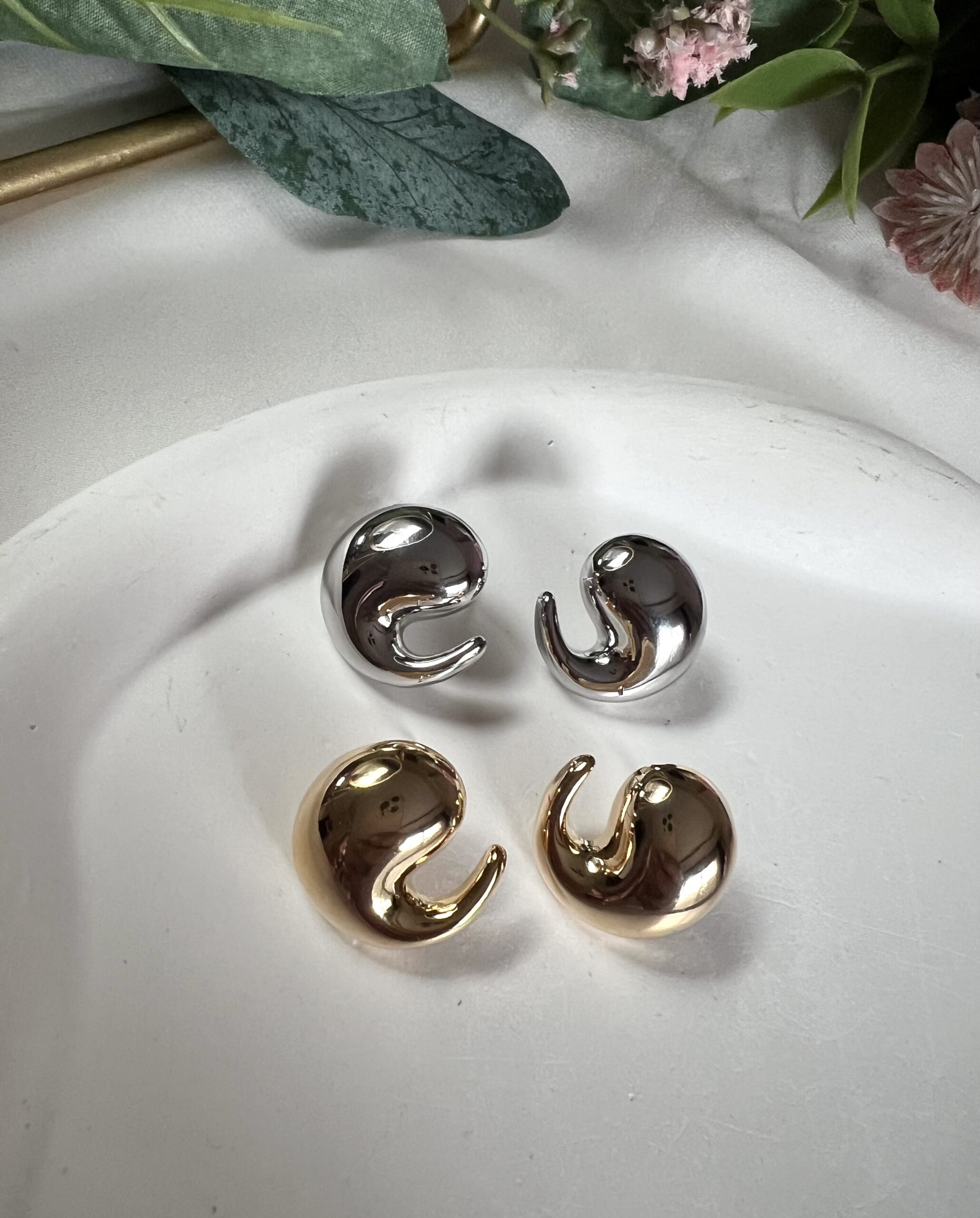 Mini Kıvrım Damla Plaka Küpe