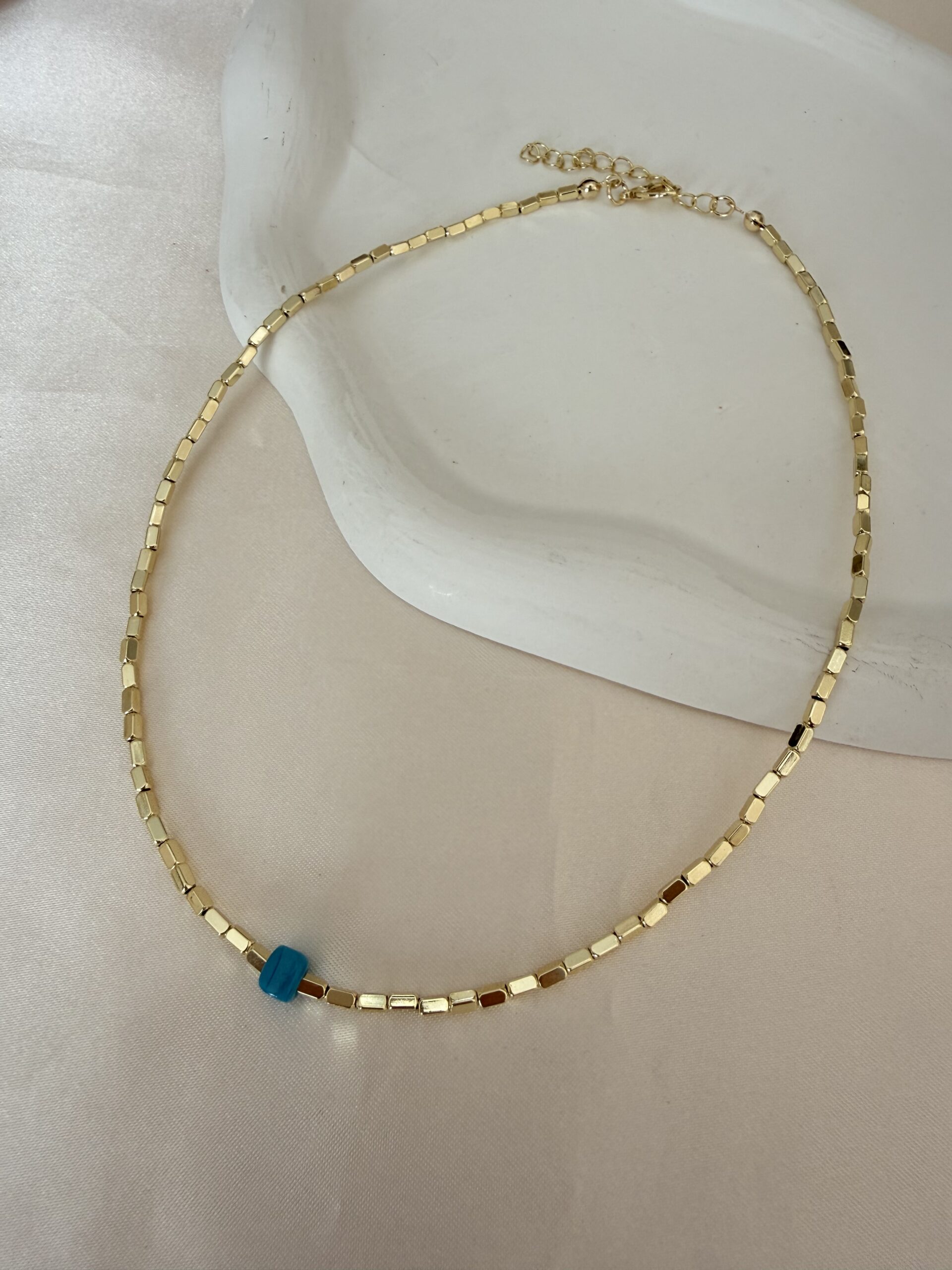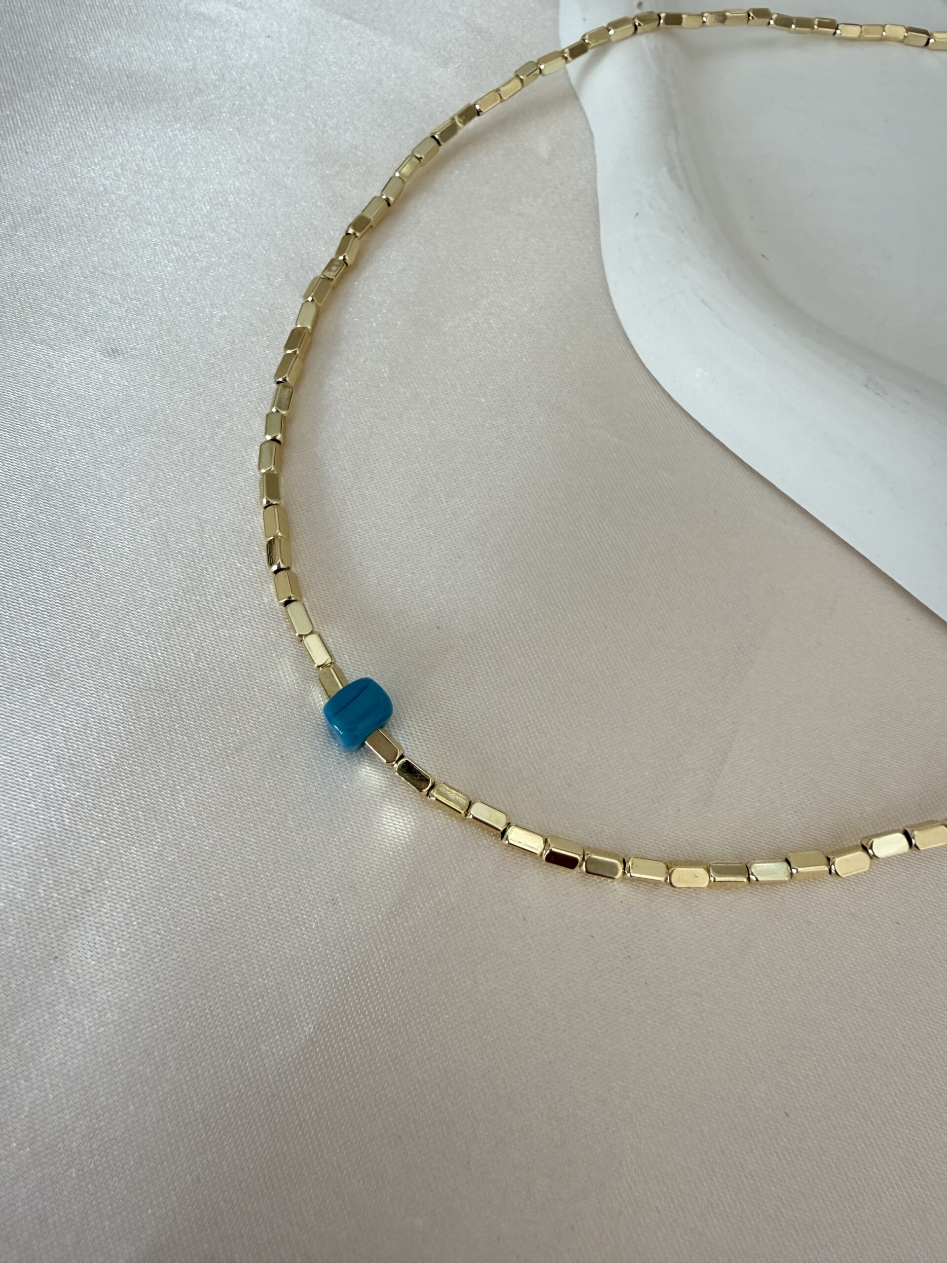Ortası Mavi Boncuk Işıltılı Silindir Kolye