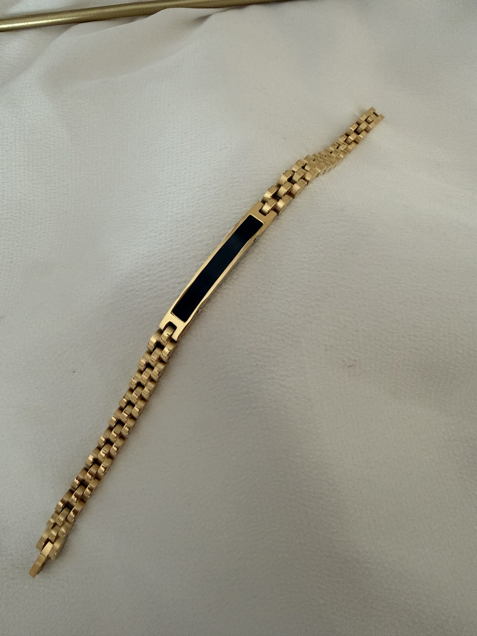 Ortası Siyah Gold Çelik Erkek Bileklik
