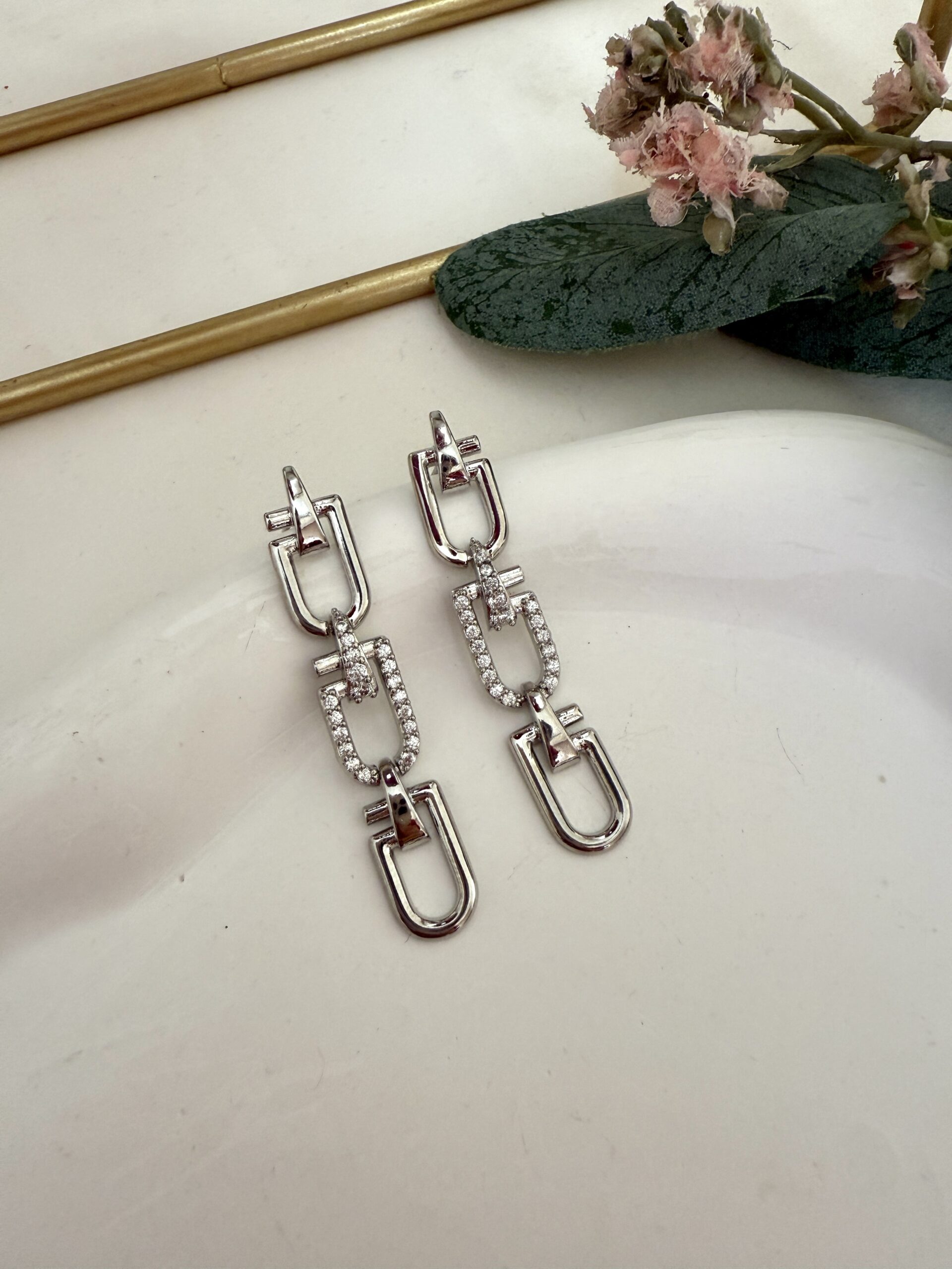 Ortası Taş Tasarım Küpe
