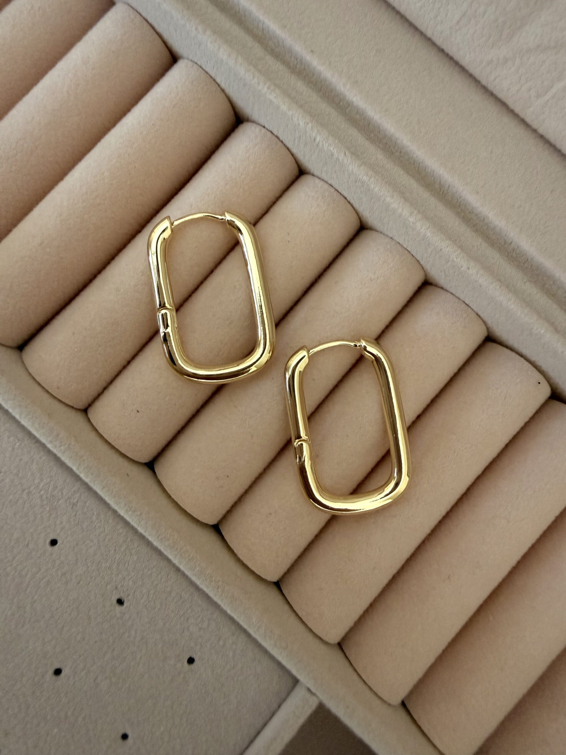Özel Seri Gold Dikdörtgen Halka Küpe
