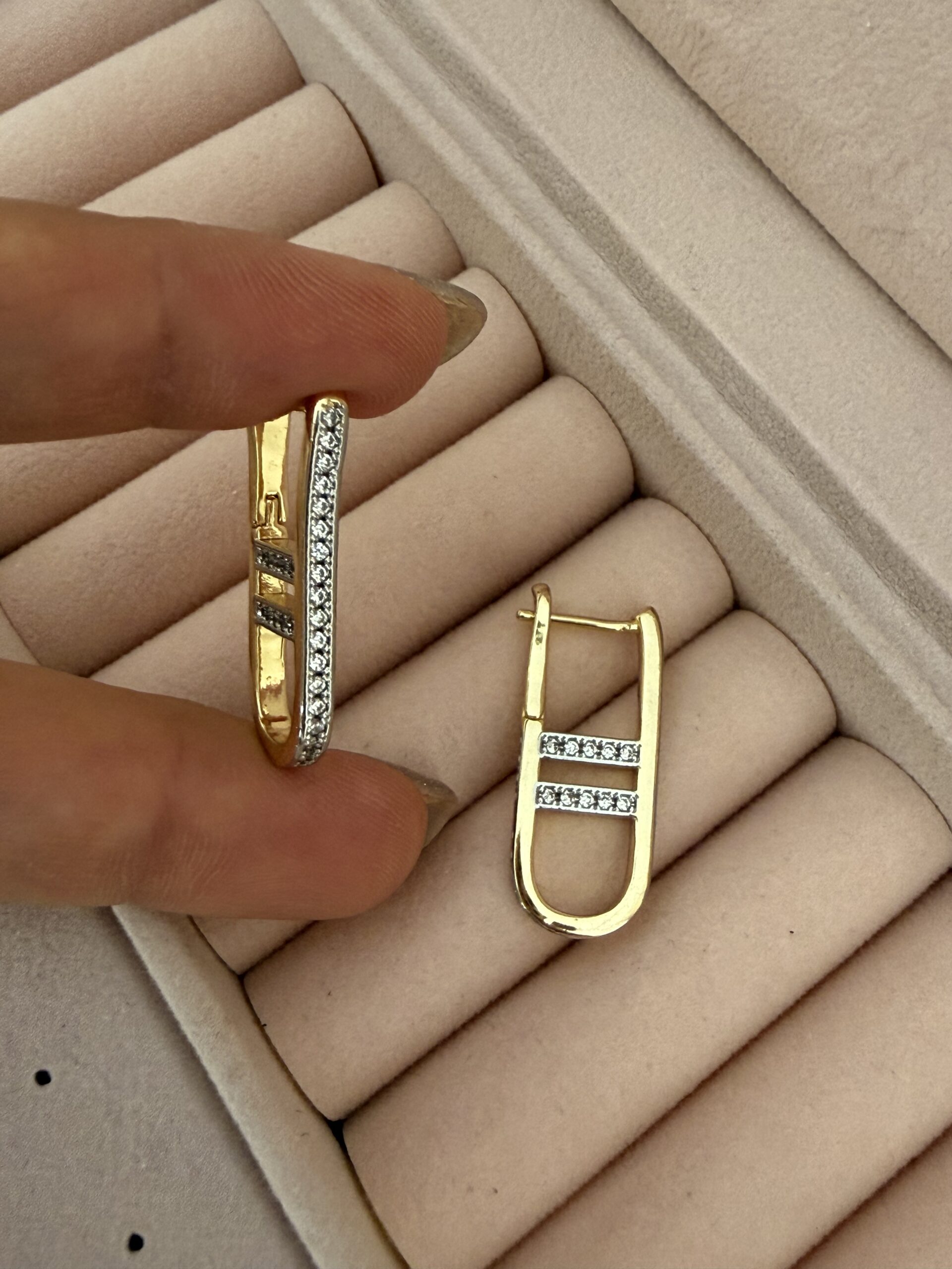 Özel Seri Ortası Ve Kenarı Şerit Taş Oval Küpe adet