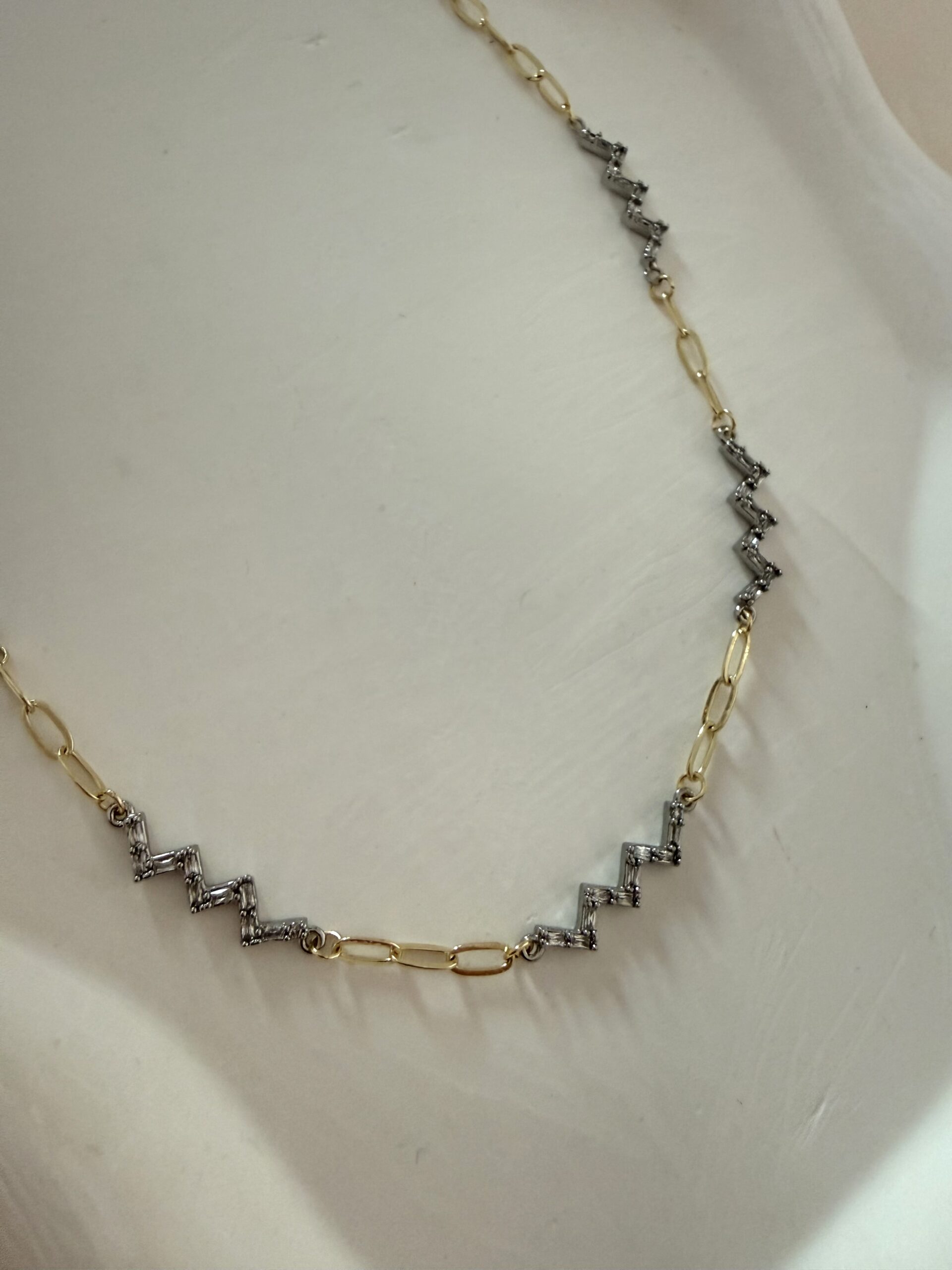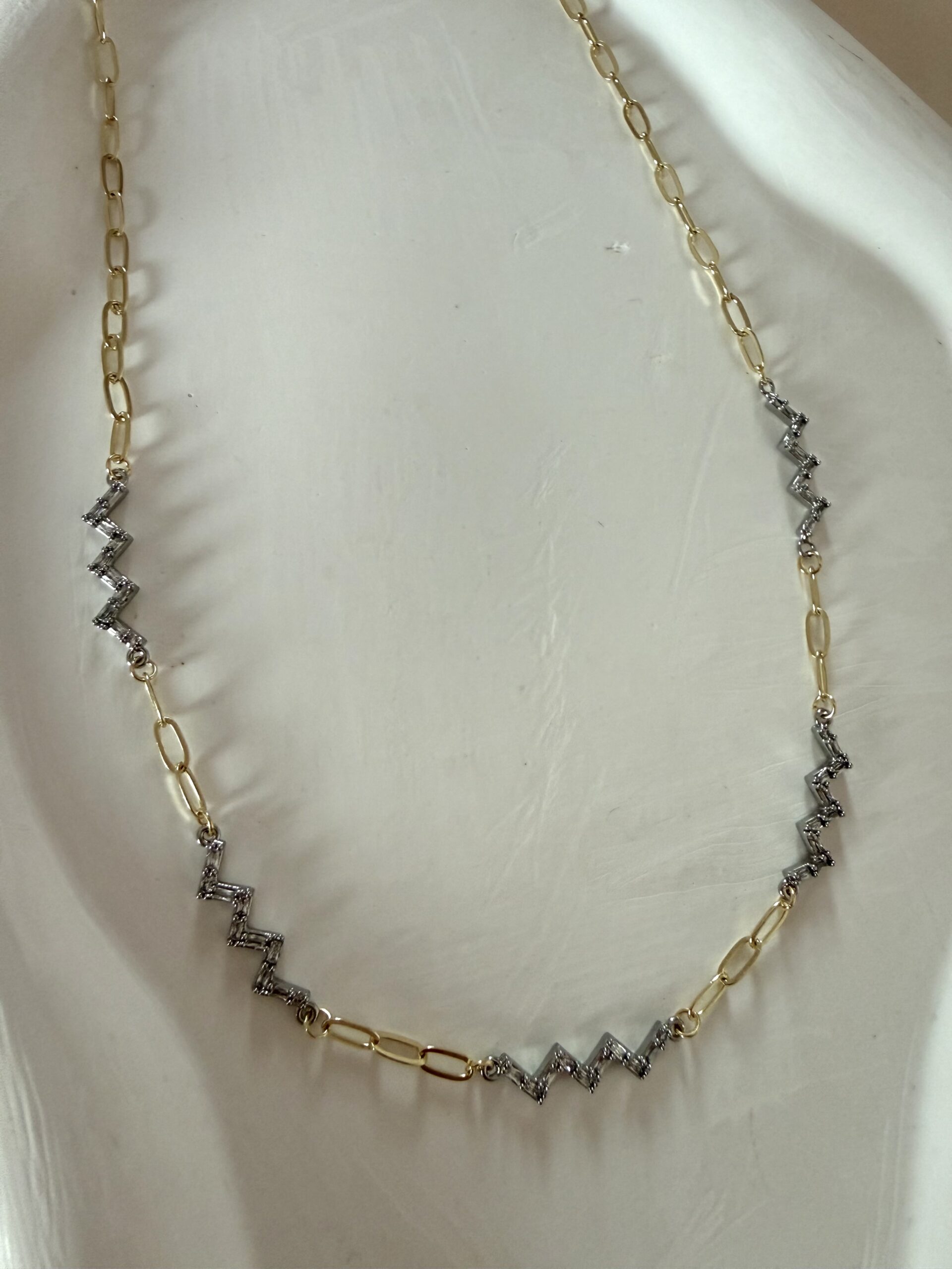 Özel Seri Zikzak Taş Gold Gümüş Kolye