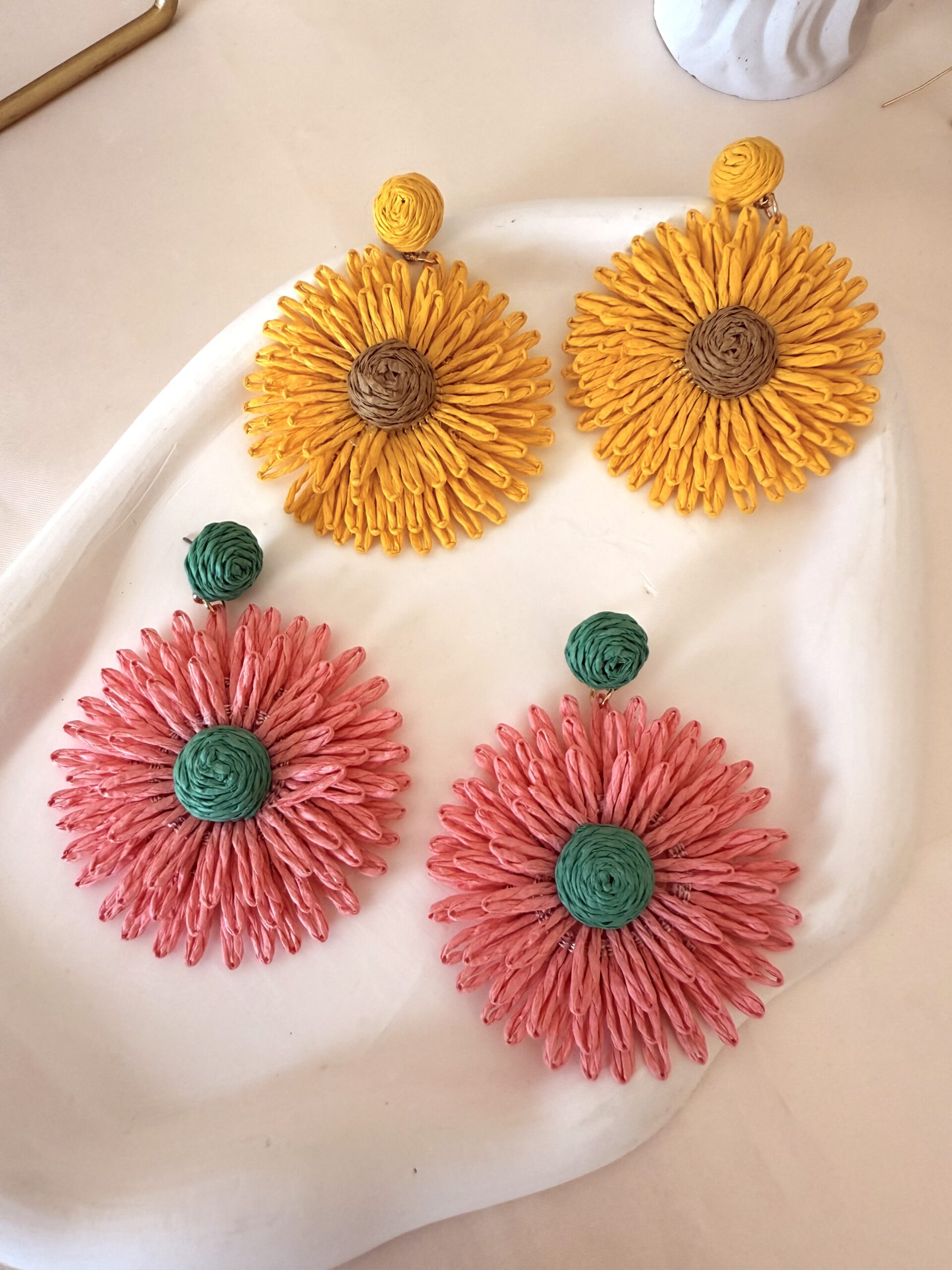 Renkli Hasır Çiçek Küpe