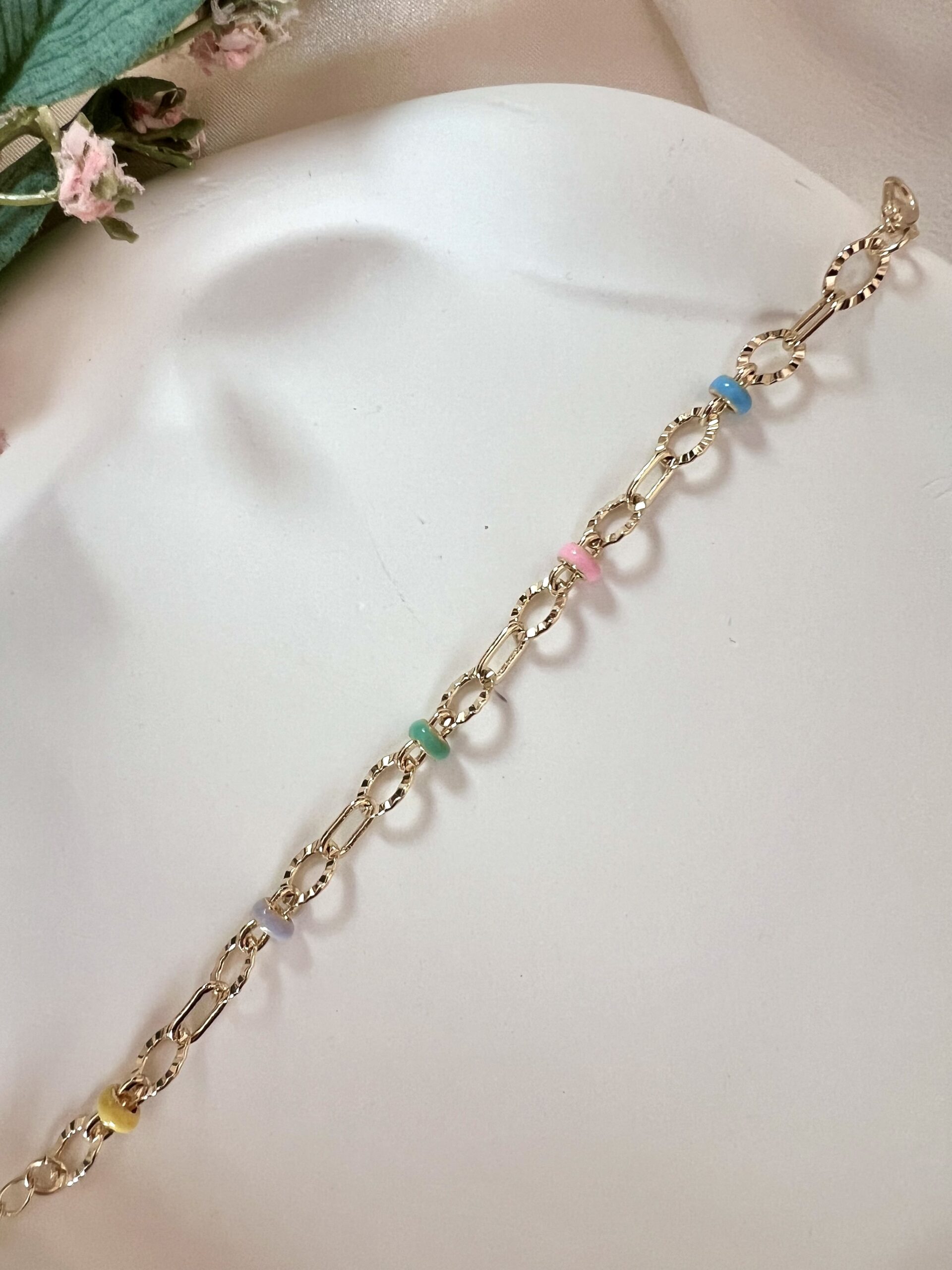 Renkli Mineli Halka Zincir Bileklik