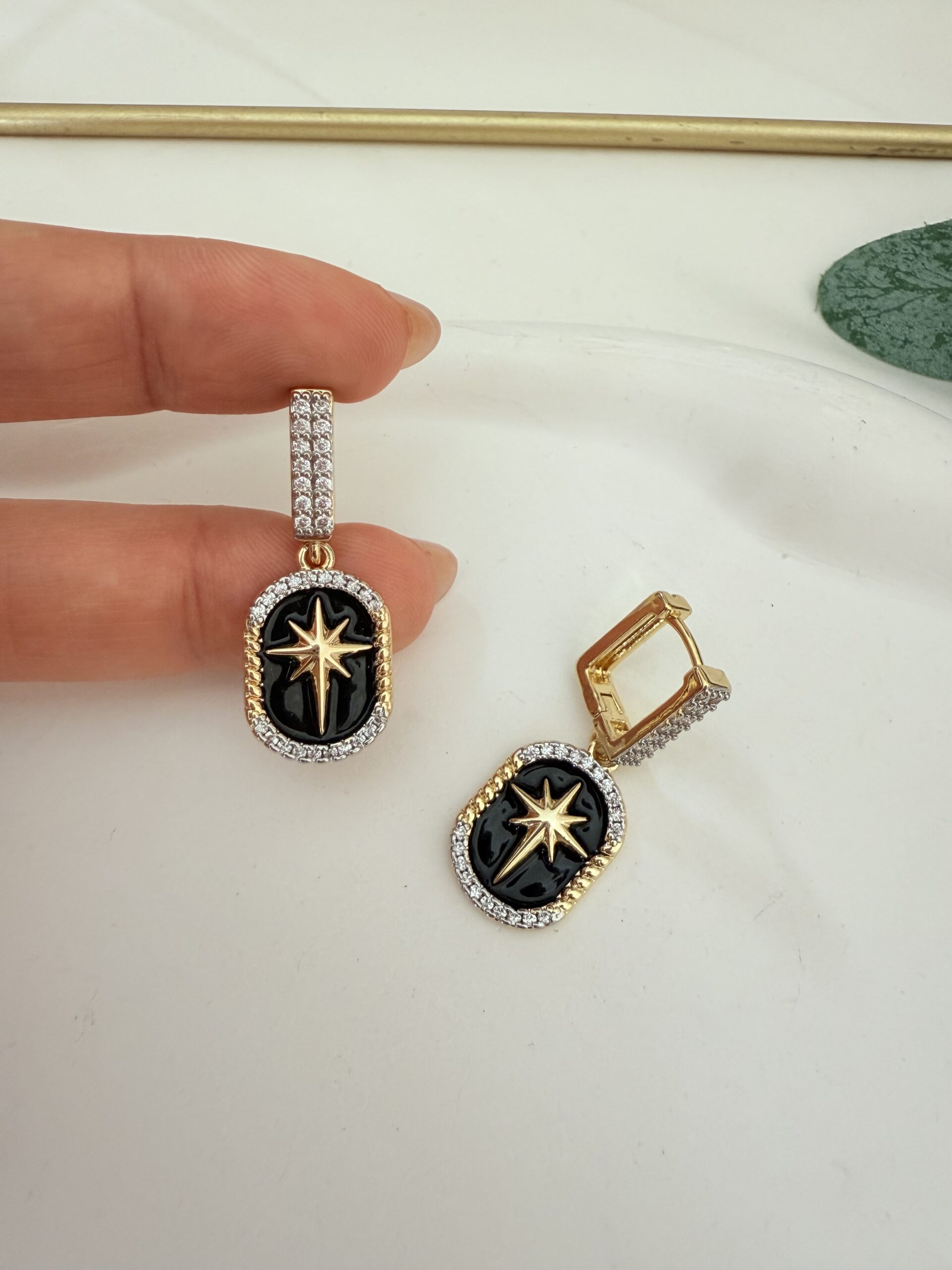 Sallantılı Siyah Mine Gold Kuzey Yıldız Küpe adet