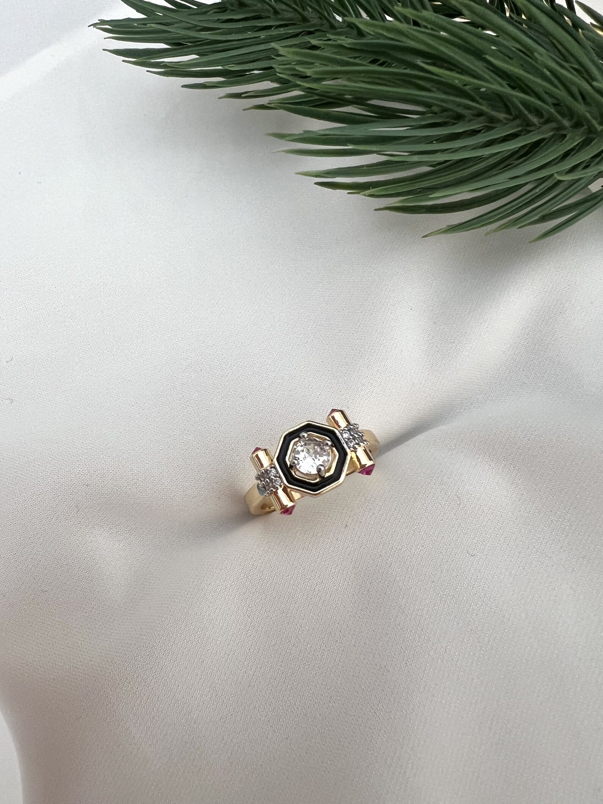Siyah Çerçeve Taş Ayarlı Yüzük