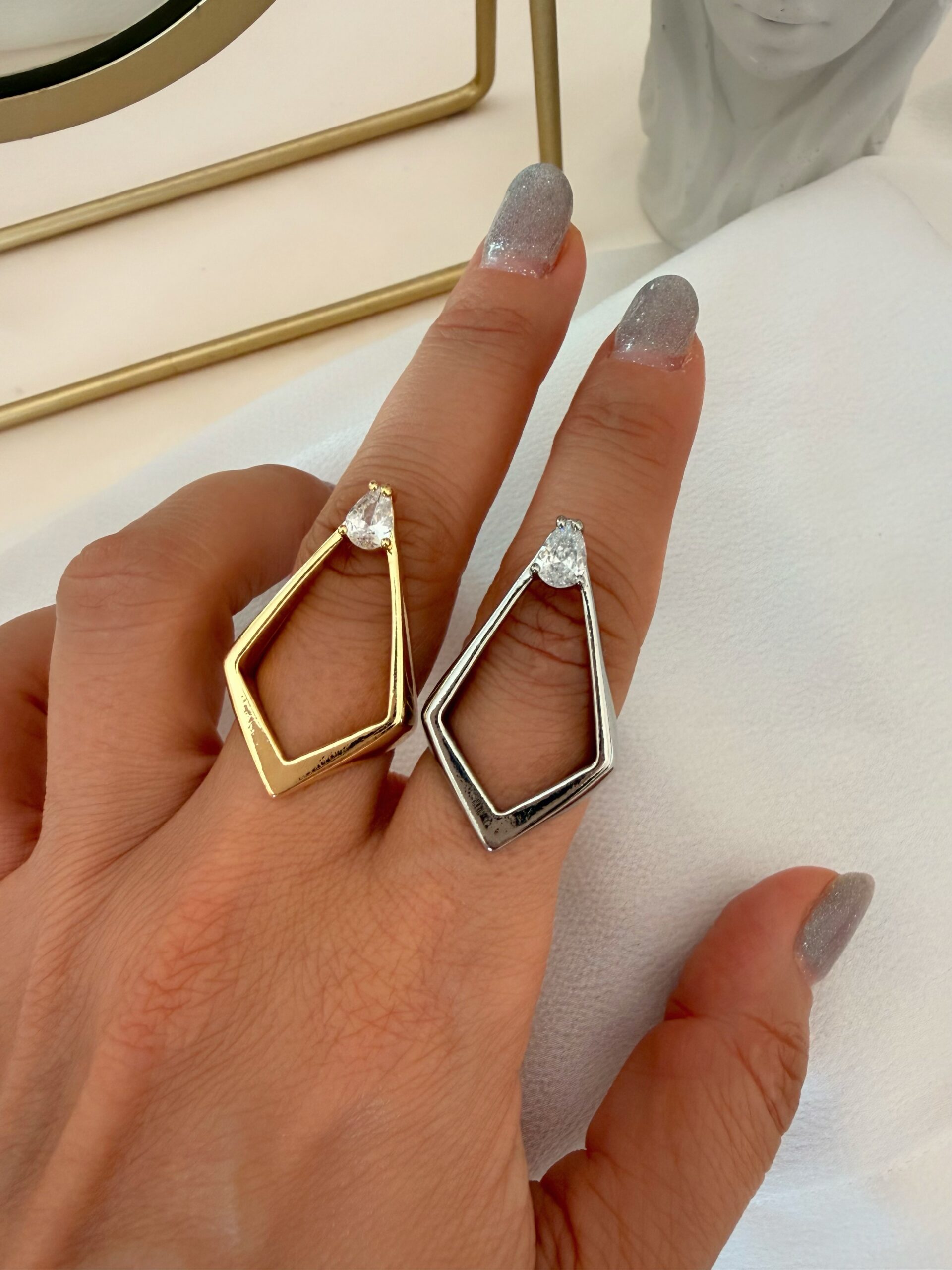 Tasarım Geometrik Plaka Ucu Taş Ayarlı Yüzük