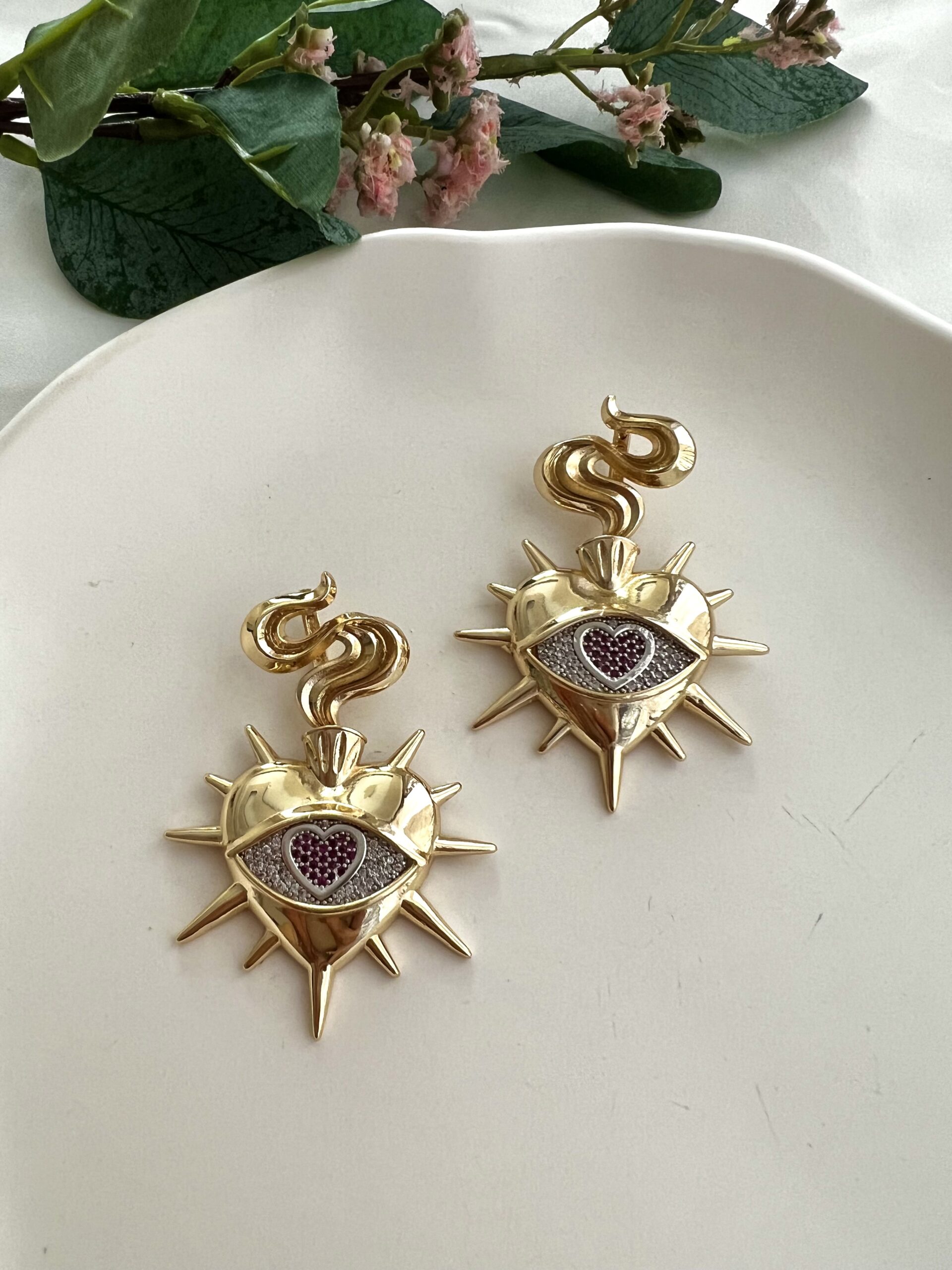 Tasarım Kalp Yılan Küpe