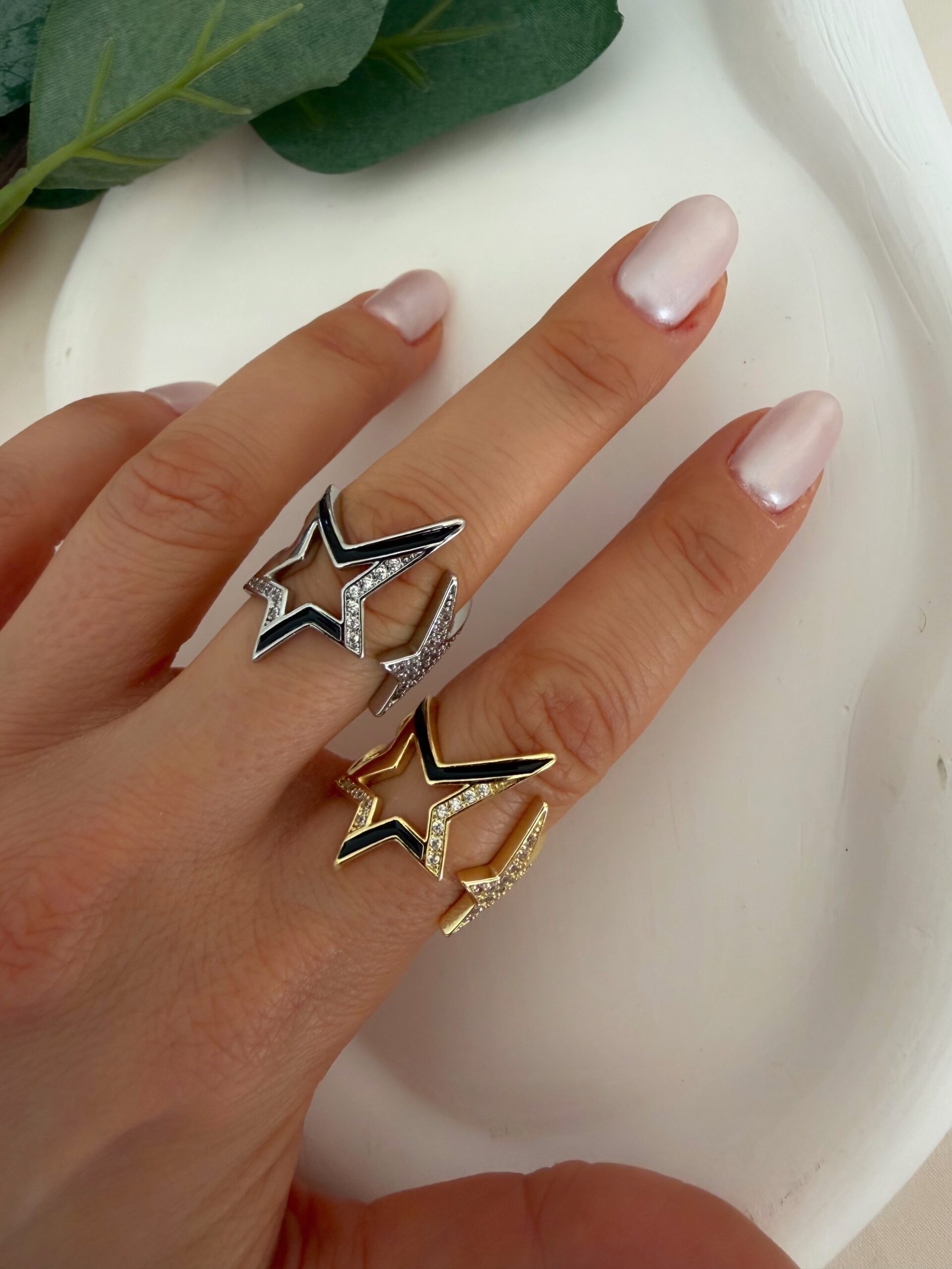 Tasarım Siyah Mineli Taşlı Yıldız Yüzük adet