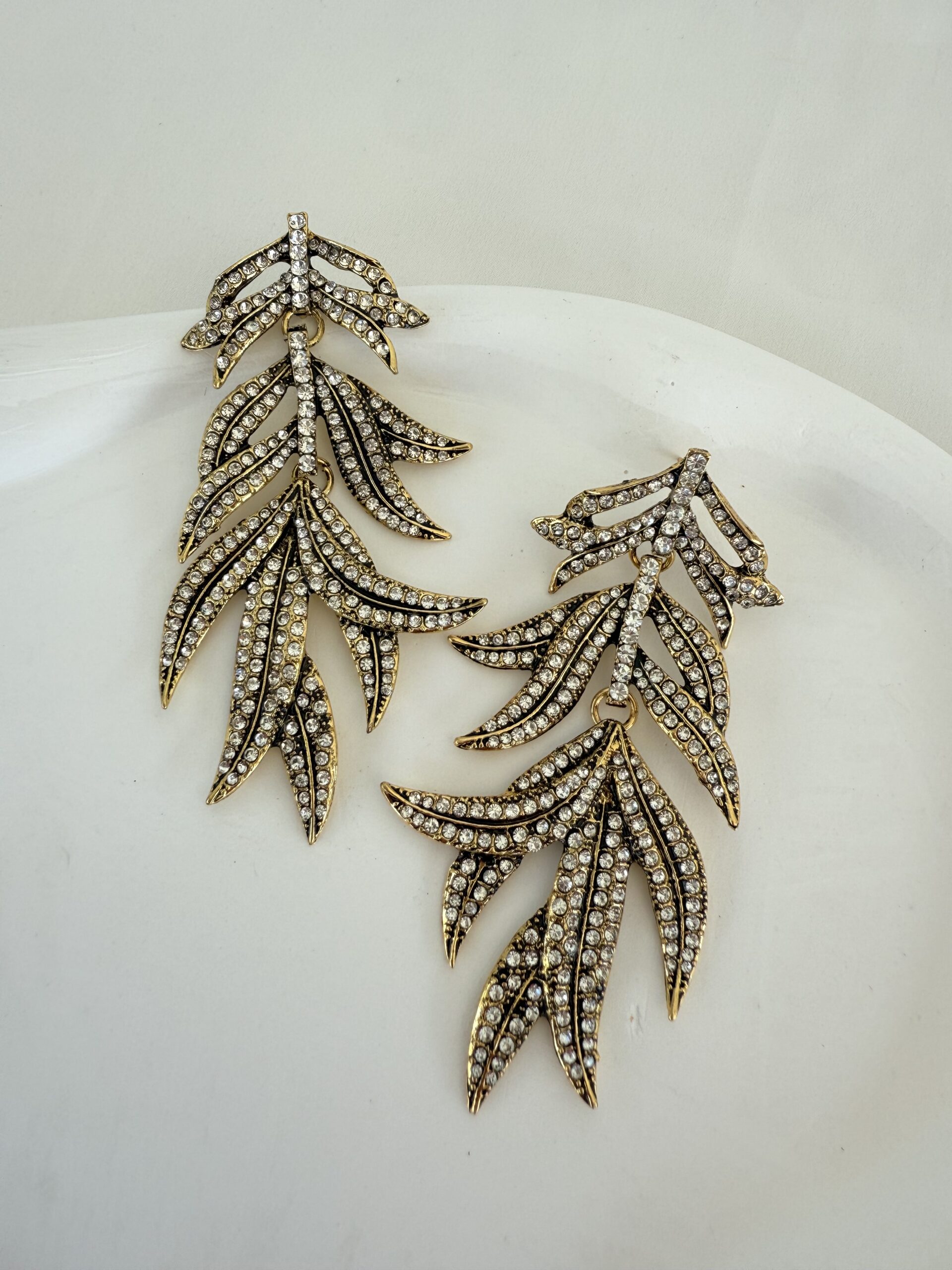 Taşlı Yaprak Sallantılı Bronz Küpe